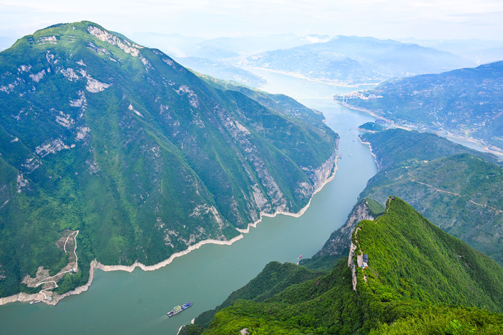 这是2025年6月9日拍摄的瞿塘峡一带景色(无人机照片)。新华社记者 王全超 摄 治理农村黑臭水体1324个,全面完成三峡库区腹心地带山水林田湖草沙保护修复主体工程,累计建成国家生态文明建设示范区和“两山”实践创新基地18个,森林覆盖率保持在55%以上……一系列深度治理“组合拳”,让母亲河“颜值”更高。 数据显示,长江干流重庆段水质自2017年起连续9年达到Ⅱ类标准,其中出境断面总磷污染物浓度连续8年优于入境断面。重庆市生态环境局局长余国东表示,接下来重庆将持续健全“九治”生态治理体系,加快建设美丽中国先行区,在筑牢长江上游重要生态屏障上展现新作为。