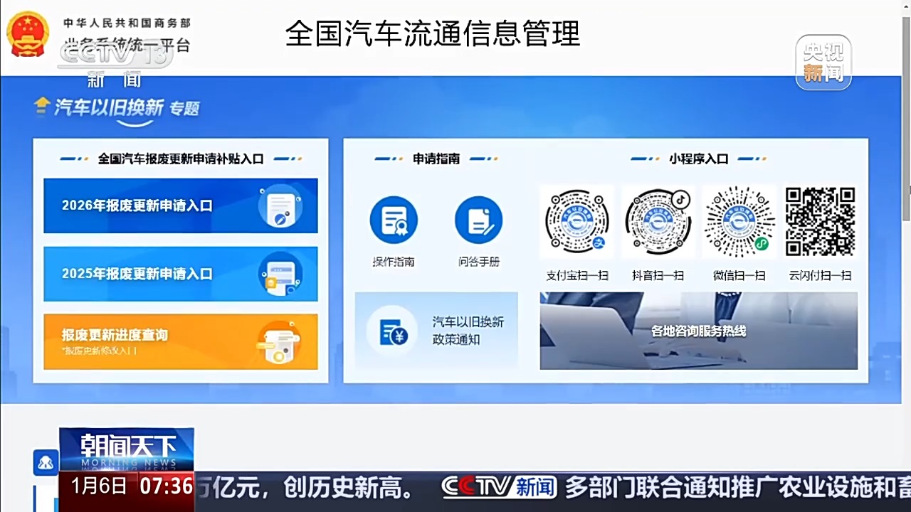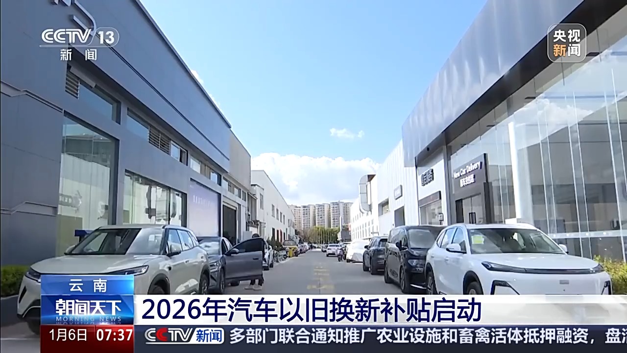 商务部等部门日前印发《2026年汽车以旧换新补贴实施细则》。云南省商务厅也发布公告,自2026年1月1日起,启动2026年云南省汽车以旧换新补贴活动。 《2026年汽车以旧换新补贴实施细则》,明确了参与申领2026年汽车报废更新补贴旧车的注册登记时间,相比2025年进一步扩大支持范围。同时《细则》明确,将继续实施汽车报废更新和汽车置换更新,全国统一按照新车销售价格的固定比例给予补贴。 云南某汽车销售有限公司销售总监 陈绍昆:从原来一个绝对固定的金额,改为按照新车发票金额的比例来进行补贴。那也就意味着,你要买的车型越贵,那么它的补贴金额可能就越高。