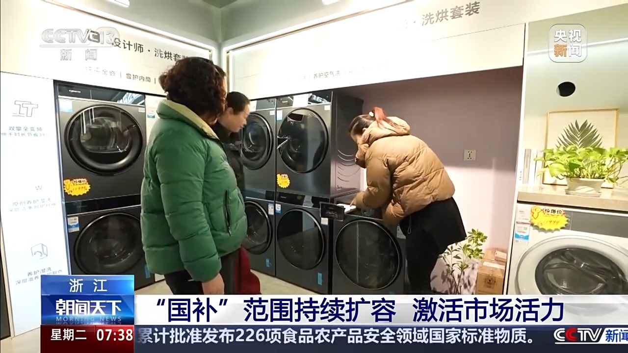 此外,杭州桐庐家电及数码产品市场也迎来了新年“开门红”,绿色、智能成为消费新风向。在城南街道一家家电卖场里,冰箱、空调、洗衣机等一级能效产品专区人头攒动。 市民 朱建娟:今年的“国补”来了,想再添置一点,所以今天又来了。