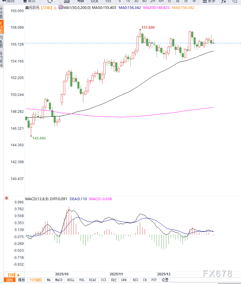 0周二亚洲时段,美元兑日元(USD/JPY)在156附近窄幅波动,未能延续此前自近两周低位的反弹。 美元走软为日元提供一定支撑,但整体汇价表现平淡,显示市场在关键数据公布前选择观望。 从短线表现看,汇价 ...