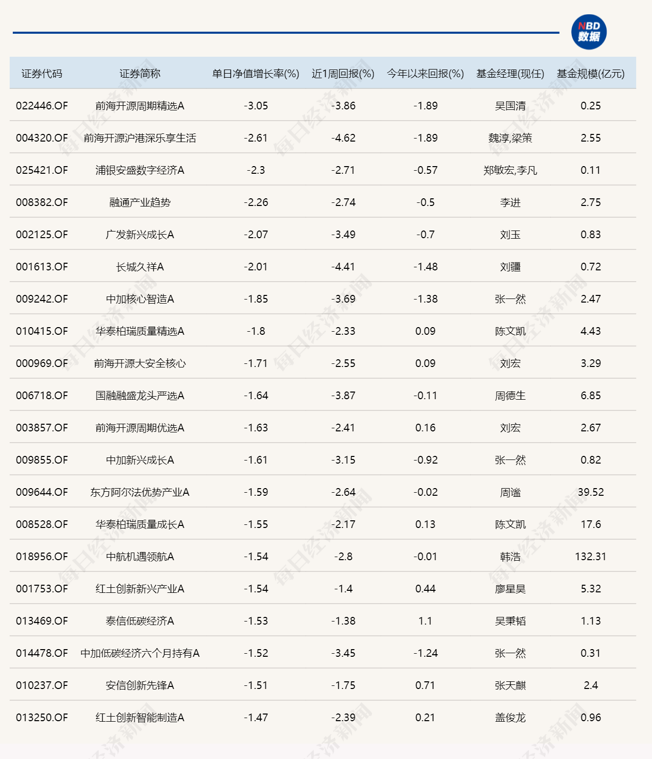 2.单日跌幅榜