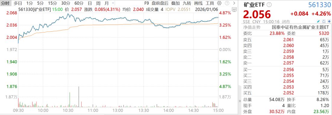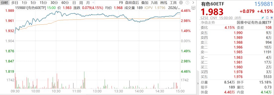 有色60ETF(159881)收盘大涨4.78% 【上涨原因分析】地缘冲突再起,有色金属期货价格集体大涨 今日有色金属期货价格集体大涨。碳酸锂期货主力合约涨停,再次站上13万整数关口,创2年多新高。沪银涨超7%,铂涨超6%,钯涨超5%,沪锡、沪铜涨近5%,沪镍涨超4%,市场氛围较为乐观。 地缘冲突再起,增加资源品供给不确定性。美国1月3日凌晨对委内瑞拉发起大规模军事行动,令国际局势更为紧张。拉美地区是全球矿产资源核心供给地之一,地缘局势紧张可能引发相关区域政策波动,进而导致供应不确定性增加。 此外,铜、铝、镍等基本金属均面临供应矛盾,支撑价格上升。近日加拿大矿产商Captone宣布其位于智利的曼托韦德铜金矿于1月2日开始罢工,莫桑比克Mozal铝厂将于2026年3月转入无限期停产,印尼镍矿商提议削减镍矿配额,淡水河谷印尼因2026年产量计划获批延迟暂停采矿作业等。有色板块各品种或持续面对供给端的扰动。 【后市展望】有色板块牛市有望延续 地缘扰动、大国博弈、能源革命等大背景下,有色牛市有望延续。一方面,国际经贸摩擦、地缘政治扰动使得全球供应链加速分化与重构,战略金属各品种或轮番演绎;另一方面,能源革命或带来新需求和产业趋势性投资机会,金属作为能源转型核心载体,有望迎来需求重构与价值重估的黄金周期。 贵金属方面: 黄金:流动性宽松、避险情绪、美元信用弱化仍然构成中长期利好逻辑。近期委内瑞拉局势再次提振市场的避险情绪。从中长期看,在货币超发及财政赤字货币化背景下,美元信用体系受到挑战;加上全球地缘动荡频发推动资产储备多元化,黄金作为安全资产的需求持续提升。“海外流动性趋松+全球避险情绪提升+全球去美元化趋势”对于黄金仍构成趋势性利好。 聚焦黄金板块的投资者可以关注黄金基金ETF(518800)和黄金股票ETF(517400)。黄金基金ETF(518800)直接投资在实物黄金上,价格或者净值的走势与国内黄金价格走势相同,黄金税改后具备场内交易的税负优势。黄金股票ETF(517400)标的指数是中证沪深港黄金产业股票指数,该指数从A股和港股市场中选取50只涉及黄金采掘、冶炼及销售等业务的上市公司证券作为指数样本,覆盖黄金采掘、冶炼、销售等全产业链环节,本身是权益资产,存在高波动特性,在金价上涨时或收获更大弹性。 工业金属和能源金属等方面: 铜:供需矛盾与降息周期利好未来表现。一方面,品位降低和激励价格压制导致矿端供给刚性,供给紧平衡格局下,铜价对供给边际扰动的反应敏感度明显提升;另一方面,去年以来因美国对铜进口关税政策存在不确定性,纽铜持续虹吸其他地区库存,伦铜及沪铜库存已降至历史低位,进一步加剧供给紧张。此外,美联储降息周期开启,复盘历史表现,降息周期通常有望推动铜价进入上涨大周期。 铝方面,供给紧约束,需求逐步释放。供给端,国内已达产能上限,海外受电网建设进度以及火电机组设备供不应求影响,产能释放节奏仍然缓慢,此前海外供给仍有扰动,比如欧美多铝厂因能源问题减产或停产、澳洲两铝厂电力协议即将到期等,整体看2026年电解铝产能增长依然有限。而需求端,虽然地产与光伏需求相对弱势,但新能源与电力等新需求推动仍然强劲。叠加宏观流动性宽松,有望持续支撑铝价高位运行。 锂方面,储能拉动需求,供需反转可期。近期宏观降息预期、产业链长单博弈和资金逼仓等多重影响下,碳酸锂价格一路上行,本质是极低的产业链库存水平和良好的排产情况之间的错配。考虑到国内外储能需求有望持续实现高速增长,同时锂资源供给建设周期偏长,预计全球碳酸锂供需预计在2026年恢复至紧平衡水平。供需反转趋势下有望推动锂价上行。目前虽然去库速度有所放慢,但仍然在去库过程中。 稀土方面,出口限制有限度放开,关注利润弹性和估值提升。我国占据全球稀土及其制品的供给主导地位,出口管制对海外市场影响巨大。伴随中国稀土出口管制有限度放开,产业链强壁垒和海外高需求有望兑现为高利润弹性。此外,地缘问题与逆全球化大背景下,稀土磁材的产业战略价值持续凸显,板块有望估值提升。 金融属性和商品属性共振,有色金属板块有望多点开花。投资者可以关注家里有矿、聚焦上游的矿业ETF(561330)。矿业ETF(561330)2025年涨幅106.11%,全市场ETF中排名第三,有色类ETF排名第一。(数据来源:Wind。时间区间2025/1/1-2025/12/31。采用二级市场涨跌幅计算,矿业ETF该区间涨幅在全市场1387只ETF中位居第三名,在全市场跟踪有色相关指数的11只ETF中位居第一名) 此外,也可以关注工业金属、贵金属、能源金属与小金属全覆盖的有色60ETF(159881)。从行业分布看,矿业ETF和有色60ETF中的黄金、铜、铝、锂、稀土累计占比均超过70%(数据来源:Wind,截至2025/12/31。行业分布按照申万三级行业分布计算)短期价格涨幅过快,投资者需注意短期追高风险,或可考虑逢低分批布局;感兴趣的投资者可以保持跟踪,把握有色板块中长期的投资价值。