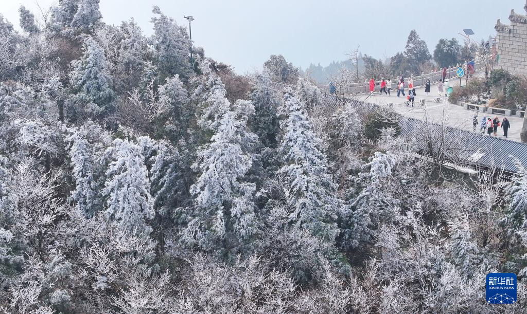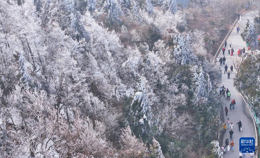 1月6日,游客在南岳衡山风景区赏景游玩(无人机照片)。新华社发(曹正平 摄)