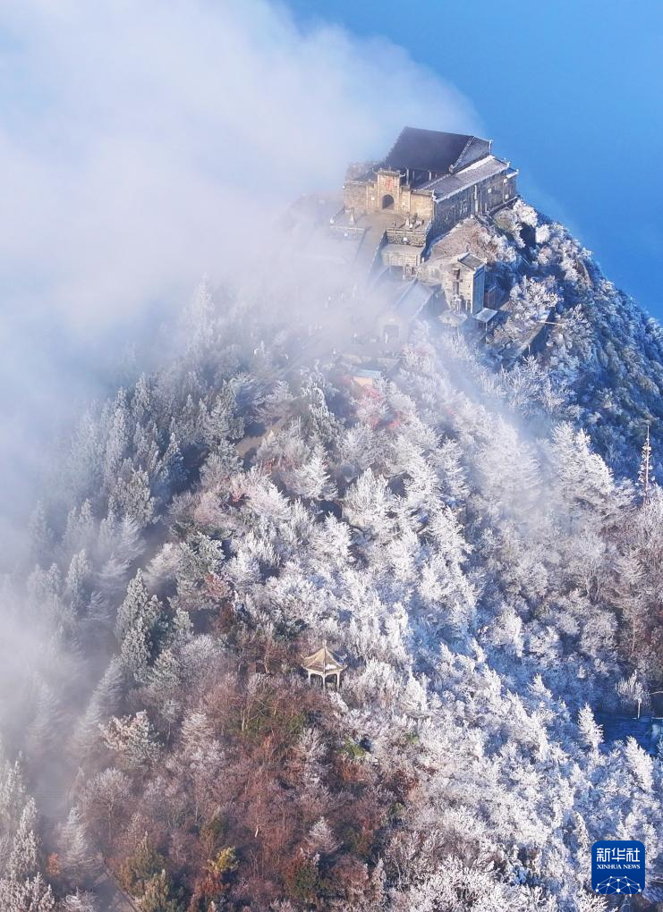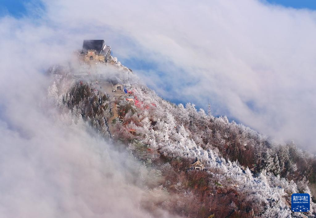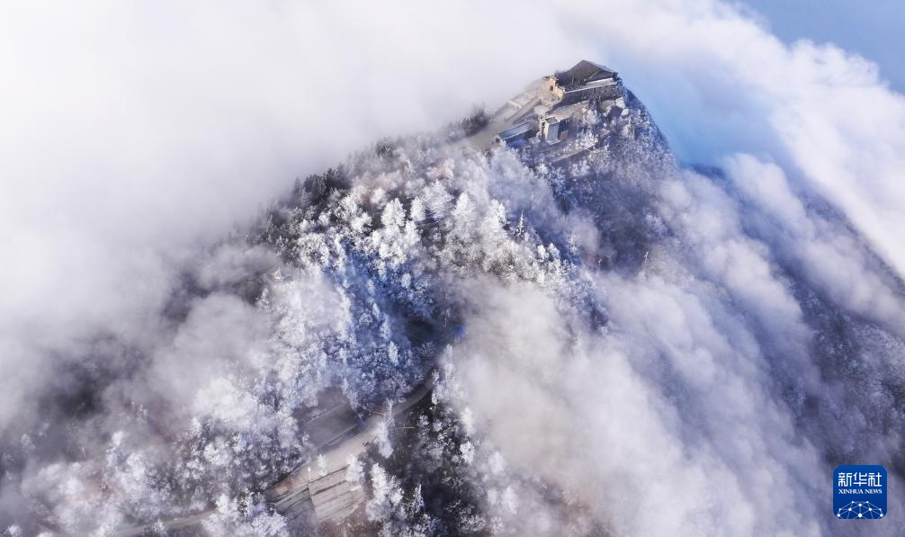 1月6日在南岳衡山风景区拍摄的雾凇云海景观(无人机照片)。新华社发(曹正平 摄)