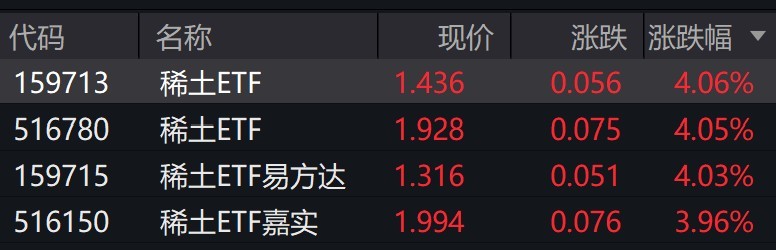 0每经记者|叶峰 每经编辑|肖芮冬 稀土概念股走强,格林美涨停,中国稀土涨超7%,北方稀土涨超6%。 受盘面影响,稀土ETF早盘涨约4%。 有券商表示,稀土作为高端制造与战略新兴产业的核心资源,正 ...