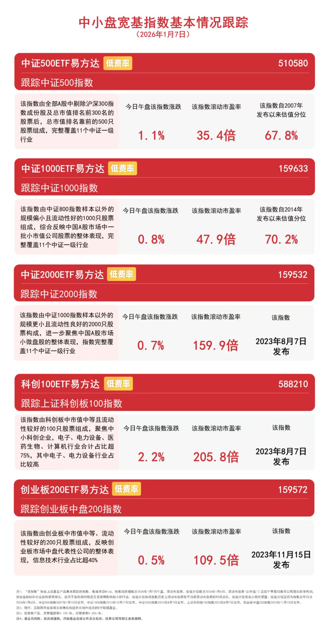 截至午间收盘,科创100指数上涨2.2%,中证500指数上涨1.1%,中证1000指数上涨0.8%,中证2000指数上涨0.7%,创业板中盘200指数上涨0.5%。