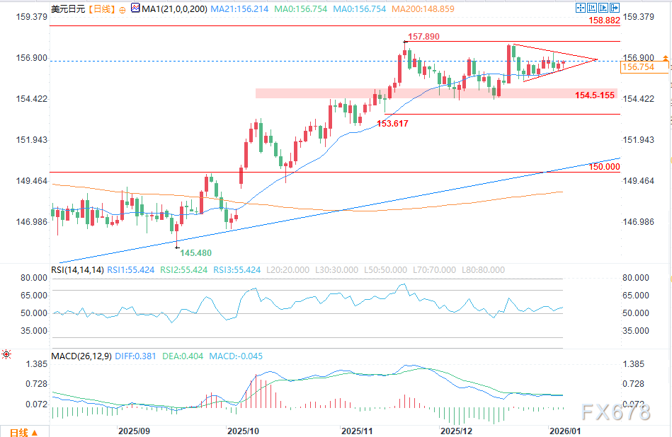 美元在年初的表现略显震荡,先是因委内瑞拉周末的局势发展而获得买盘支撑,但随后回吐部分涨幅,不过到周二又再度反弹。值得注意的是,市场对地缘政治噪音的消化速度非常快——不仅是委内瑞拉,也包括格陵兰岛的相关消息。在地缘政治退居次要位置后,市场焦点已完全转向美国的数据日历。本周的就业指标可能会影响美元/日元的预测以及其他主要货币对的短期走势。 ![]() 在委内瑞拉周末出现戏剧性头条后,美元在2026年第一个完整交易周开局走强。欧元和瑞郎走弱,而黄金、白银和股市均走高。油价波动更大,在周二因市场担忧新增供应而大幅震荡后回落。特朗普总统表示美国可能控制委内瑞拉多达5,000万桶原油后,油价进一步走软。 但整体市场反应明显温和。美元虽收复部分失地,但这更像是季节性资金流入以及欧元等货币因数据疲软而走弱,而非地缘政治溢价推动。 正如前文所述,市场反应喜忧参半,而非偏向防御性。这表明投资者并不预期局势会立即升级,而是在权衡短期不确定性与委内瑞拉石油产量的长期影响。虽然美国对委内瑞拉的更深介入,或与格陵兰相关的任何军事行动,都可能对市场产生更大冲击——并可能推动部分资金回流日元——但目前风险偏好仍保持稳定。这种背景继续支撑美元/日元。 所有目光重新投向美国数据 本周剩余时间将公布一系列美国就业报告,这些数据可能影响市场对1月初的预期。从历史上看,美元往往在12月表现疲软,然后在新一年开始后企稳。由于市场已大量计入美联储的降息预期,除非数据明显恶化,否则美元空头可能难以持续发力。因此,任何意外的上行数据都应有助于支撑美元/日元的预测,尤其是在日本央行和日本政府均未采取实质性反击措施的情况下,日元仍承压。 本周的ISM制造业PMI偏强,在此之前2025年底的数据,包括初请失业金人数、成屋待完成销售以及第三季度GDP普遍强于预期。第三季度GDP增速上修至年化4.3%,远高于3.3%的共识预期,这使得今年美联储大幅降息的理由变得复杂。 目前,市场预计美联储要到6月才会首次降息25个基点,第二次则预计在9月。如果本周的劳动力市场数据表现强劲,这些预期可能会被大幅削减。虽然今天的ISM服务业PMI走强,市场走势更可能由ADP就业报告(市场预期略低于5万人)以及JOLTS职位空缺数据主导(偏弱)。由于美联储现在更关注就业而非通胀,这些数据对美元尤为重要。目前来看,美元的短期前景保持中性至温和偏多。 技术分析:价格走势仍偏向上涨 ![]() 从技术角度来看,尽管本周从157.00附近回落,但美元/日元的最小阻力路径仍然偏向上行。目前主要的利空论点是,该货币对在4月开始的涨势中未能刷新2025年高点。涨势在11月受阻于158.00下方,使得2025年1月的高点158.88保持完好。 尽管如此,从美元/日元图表来看,这更像是盘整而非趋势反转。需要关注的关键水平是更大级别三角形形态的趋势支撑以及21日指数移动平均线,两者均位于156.00附近。只要多头能够守住该区域,上行偏向就仍然成立。然而,若明确跌破该区域,则可能打开进一步回落至155.00的空间。