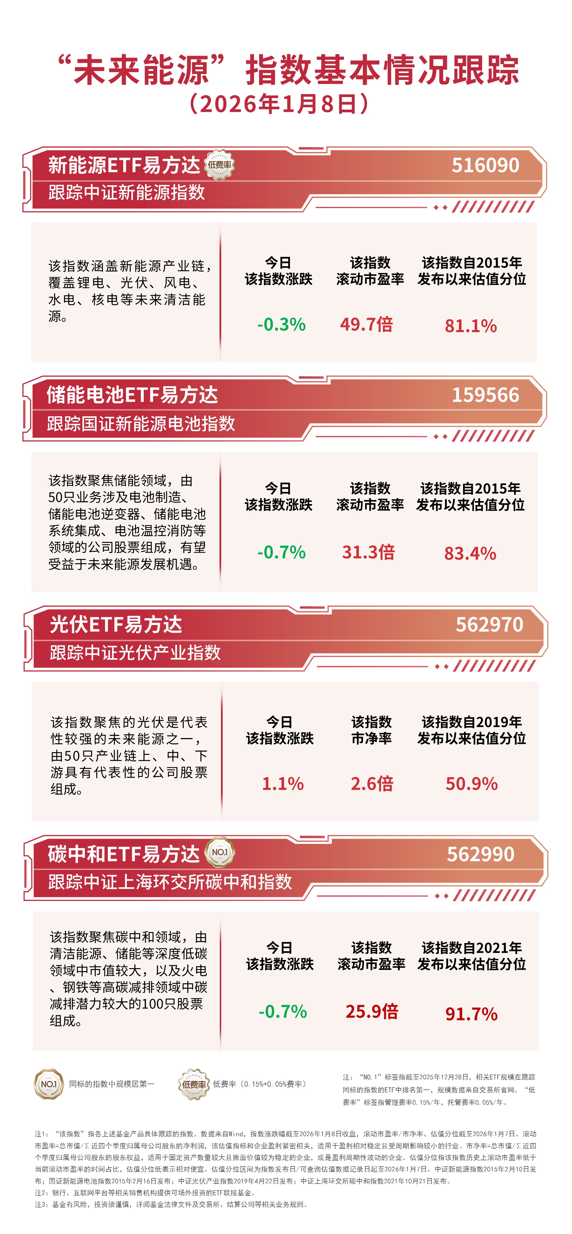 0今日,新能源板块震荡分化,光伏组件、电池片等概念逆势上涨。截至收盘,中证光伏产业指数上涨1.1%,中证新能源指数下跌0.3%,国证新能源电池指数、中证上海环交所碳中和指数均下跌0.7%,相关ETF受资金关注,储能电 ...
