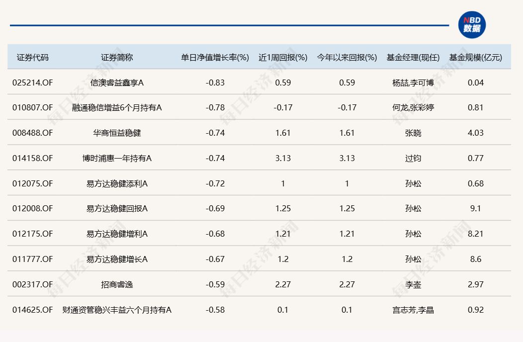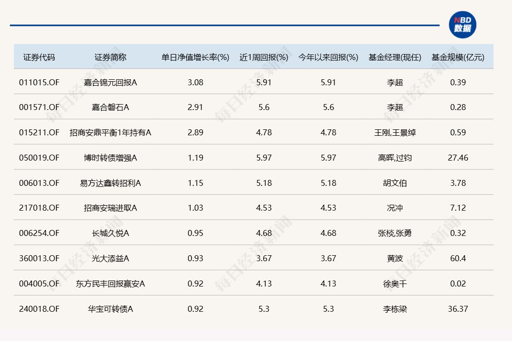 3.单日债基涨跌幅榜