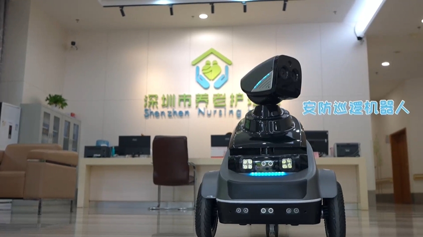 楼道间,安防巡逻机器人不停地往来穿梭,巡视各个角落的消防安全。送药机器人则“怀揣”药盒,将今日份的药品送到老人面前;