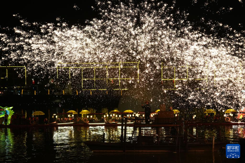 1月9日,游客在南岳里观看水上舞蹈演出。新华社记者 陈振海 摄