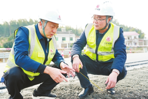 1月6日,国道536桃江段。朔风紧,施工忙。 “碎石大小要合标!”“两台摊铺机并肩走,中间缝不能留!”……益阳市公路建设养护中心工程科科长宋涛的叮嘱声,穿透了机器的轰鸣。他一会儿蹲下,指尖划过刚摊铺的路面;一会儿站立,目光锁住前方的作业带。