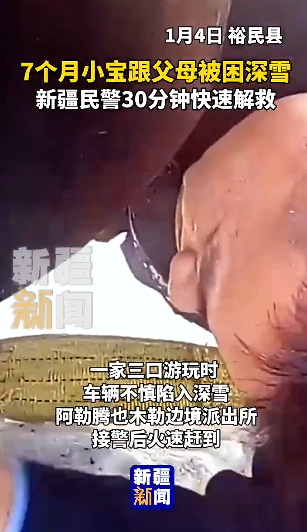2026年1月4日 一对夫妻带着7个月大的宝宝出游 车辆不慎陷进深雪,进退两难 阿勒腾也木勒边境派出所 接警后民警火速赶到 他们一边安抚焦急的群众 一边利用拖车和人力救援 经过半小时努力 车辆终于脱困 民警离开时 车主紧紧握着民警的手 连说好几声“谢谢”