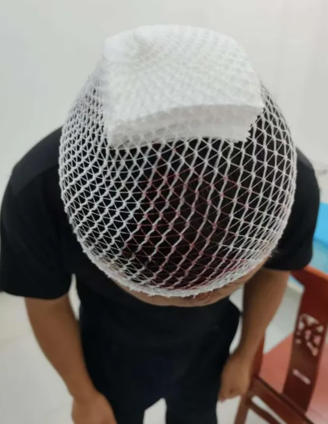 到卫生院处理伤口后 他的头被包扎了起来 妈妈发消息想和他打视频 为了不让妈妈担心 他撒谎说 “手机摄像头坏了”