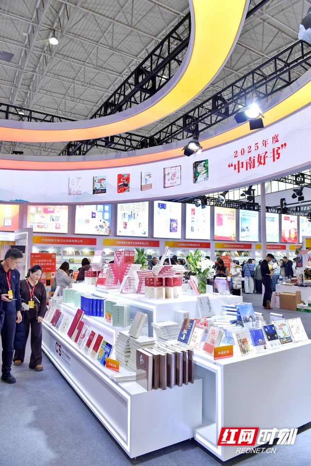 订货会现场,20种2025年度“中南好书”被重点推介。 在湖南省委宣传部的指导下,中南传媒已连续三年举办“中南好书”评选推荐活动。本届订货会上,2025年度“中南好书”集中亮相。《靠什么团结凭什么胜利:中共七大启示录》《桂林!桂林!中国文艺抗战》《捷报1927—1949》《功勋711》《孤勇:左宗棠新传》《我在乡村做书店:先锋书店的乡村十年》《古物说:文物里的古人日常》《归来仍是少年:杨振宁传》《旧日烟火》《引回风——随笔自选集》《我恋禾谷》《换梅》《胡同烟火》《桃花源没事儿》《怎样观察一只鸟》《我不能在鸟兽身旁只是悲伤》《人工智能的边界》《出生的故事》《万物有信书系》《超燃新科技》等,既是中南传媒主业交出的一份成绩单,又是送给读者的一份书香厚礼。 “2025书业年度致敬”颁奖典礼上,现场揭晓“年度出版人”“年度出版社”“年度书店”等十余个关键奖项,系统梳理并表彰了过去一年中国书业的卓越贡献者与创新实践。其中,《岩中花述》《何以汉服》《什么是好的教育系列》《大敦煌》《人工智能的边界》《长沙坡子街秦代简牍》《土拨鼠给闪电写信》等七种湘书精品斩获“年度图书”荣誉。 深耕主题出版,传承红色基因 北京图书订货会,不仅是行业交流的平台,更是读者的节日、阅读的盛宴。本届订货会,中南传媒以读者为中心,推出16场精彩纷呈的主题活动,涵盖新书发布、文学对话、艺术鉴赏、少儿阅读推广等多个维度,以深度互动点燃读者热情。 作为本届订货会的重大活动,《中国共产党建设史》(五卷本)、《中国革命根据地地图集》等两部党史党建领域的主题出版力作重磅首发,彰显中南传媒传承红色基因、筑牢思想根基的文化担当。