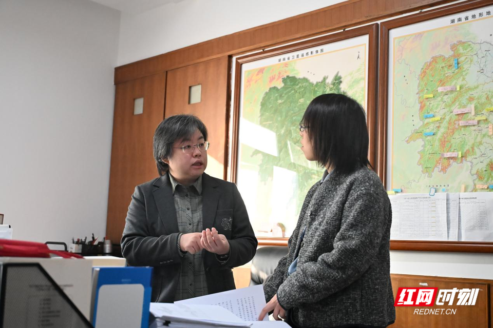 办公室里,刘小澜(左)和同事在沟通工作。 红网时刻新闻记者 何青 王诗颖 长沙报道 办公室墙上,一张湖南省地图格外引人注目。 这张图,是省审计厅自然资源和生态环境审计处处长刘小澜的“宝贝”,也是她的“作战图”。 粉色便利贴代表2023年的审计项目,蓝色则标注2025年的新布局——哪片应重点督查林地保护,哪段区域应紧扣水资源开发利用情况,哪个开发区要重点关注土地集约利用,她心里有一本清晰的账。 2025年12月,这位扎根资源环境审计战线二十二年的“老兵”,被评为“全省担当作为优秀干部”。从青丝到白发,她把最美好的年华,“钉”在了湖南的山水之间。