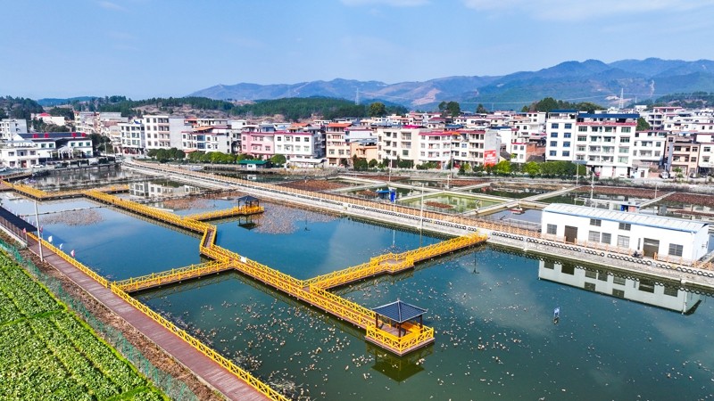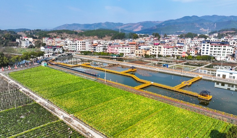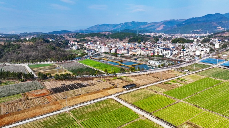 红网时刻新闻1月12日讯(通讯员 刘贵雄)1月12日,湖南省永州市新田县中山街道潭田村,青山、菜地、鱼塘、道路、河流与错落有致的民居相互映衬,构成一幅生态宜居的和美乡村画卷。近年来,湖南省新田县潭田村结合美丽乡村建设,大力推进农村环境综合整治,发展蔬菜种植和渔业养殖等产业,促进农旅融合发展,打造生态、美丽、宜居的和美乡村典范。