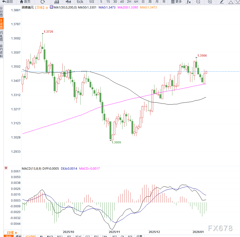 英镑兑美元周二连续第二个交易日小幅走高,延续此前自1.3390附近(三周低点)的修复走势,目前汇价运行在1.3475一线,日内涨幅接近0.10%。 ![]() 这一表态在短期内削弱了美元的市场信心。 不过,美元下行空间依然受限。近期美国失业率下降,在很大程度上抵消了非农就业数据不及预期的影响,强化了市场对美联储在第一季度维持政策稳定的判断。 与此同时,投资者正等待即将公布的美国消费者通胀数据,在关键数据出炉前,美元空头态度相对谨慎。 从英镑自身因素来看,市场对英国央行在2026年可能进一步降息的预期正在升温,这在一定程度上限制了英镑的反弹动能。本周稍晚将公布的美国生产者物价指数以及英国月度GDP数据,或为汇价提供新的方向指引。 从日线图形来看,英镑兑美元在1.3390附近获得支撑后出现技术性反弹,价格重新回到短期均线附近,显示下行动能有所缓和。但整体仍处于此前回调结构中,上方1.3500—1.3550区域构成重要阻力,下方1.3400一线则是短期多空分水岭。 在有效突破关键阻力前,汇价更可能维持区间内震荡修复走势。 ![]() 总体而言,当前英镑兑美元的反弹更多来自美元走弱,而非英镑基本面显著改善。在美联储政策前景尚未明朗、英国央行降息预期仍存的背景下,汇价短期内或难以形成单边趋势。 后续走势的关键仍取决于美国通胀数据以及英国经济数据能否改变市场对两国货币政策路径的预期。