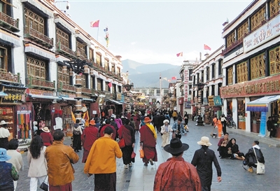 共创共享美好生活 西藏拉萨八廓街上游人如织。 旅居拉萨的土耳其友人 阿尔帕·阿尔巴伊拉克摄 在拉萨沐浴着明媚温暖的阳光,漫步于熙熙攘攘的街市,遇见热情友好的中国朋友,他们虽然来自不同的行业、承载着多彩的文化印记,却同样让我感受到了美好生活的真谛。