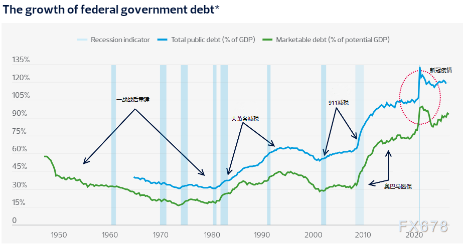 随着新一年扩张性财政政策逐步落地,这一赤字数字还将继续攀升,更值得警惕的是,剔除既往债务利息支出后的基础财政赤字,已占到国内生产总值的3.78%,这样的水平从长期来看毫无可持续性可言。 ![]() 政界对债务高企的风险视若无睹,金融市场却早已敲响警钟。 当前美国国债的期限风险溢价持续抬升,即便美联储开启降息周期,长期利率依旧逆势走高,这正是市场对美国债务可持续性投出的不信任票。 回溯过去15年,美国政府债务规模的膨胀速度令人咋舌,而两党在债务问题上的不作为,更是让这一风险不断累积。 叠加后疫情时代全球经济的结构性转变,高通胀与高利率逐渐成为常态,债务问题的潜在破坏力也随之水涨船高。 国际清算银行总经理在近期演讲中特别强调,与政府债务扩张相伴而生的,是非银行金融中介机构的快速崛起,以及短期高杠杆交易头寸的泛滥。 这类机构游离于严格的监管体系之外,其潜藏的风险不言而喻。 2007-2009年的金融危机早已证明,非银机构的无序扩张会给经济体带来致命冲击。 而危机后各国为挽救经济推出的货币与财政刺激政策,又进一步扭曲了市场融资机制,加剧了公共债务负担,形成了难以打破的恶性循环。 从本质上看,政府债务的失控增长会产生“挤出效应”,挤占本可流向私人部门的投资资金,最终拖累经济体的潜在增长水平。 赤字模式的根源:顺周期政策与历史镜鉴 事实上,美国政府债务占经济体量的比重,自上世纪80年代起就踏上了持续攀升的道路。 所谓无资金来源支撑的财政支出,就是政府承诺的支出无法通过税收收入覆盖,只能依靠增发国债来填补缺口。 不可否认,在疫情这类突发冲击下,这类支出能有效防止经济滑向深度衰退,但在经济上行周期,这种顺周期的扩张性财政政策无异于火上浇油,不仅会加剧通胀压力,还会进一步推高利率水平。 尽管有观点宣称经济增长能自动化解赤字,但回顾上世纪80年代以来的历史,这种论调从未得到过现实的验证。 真正值得所有市场参与者深思的是,美国这种靠举债度日的模式,究竟还能维系多久? ![]() 金融体系的异变:非银机构主导的投机新局 从当前市场表现看,美国债券市场似乎仍具韧性,贸易伙伴为换取地缘政治安全保障和美国市场的准入资格,仍愿意为美国债务买单。 但不容忽视的是,全球金融体系的运行逻辑已因美国债务激增而悄然改变。 如今,监管薄弱的非银机构正将美国国债视为短期投机的工具,市场投机的焦点也从以往的私人部门债务,转向了不断膨胀的公共债务。 据国际货币基金组织统计,全球半数以上的金融资产目前由不受银行监管体系约束的机构持有,这些涵盖投资基金、对冲基金、保险公司在内的非银主体,正凭借高杠杆策略在主权债券市场中逐利。 表面上看,非银机构的参与拓宽了融资渠道,给政府、企业和居民都提供了更多资金选择,但潜藏的风险却在暗流涌动。 ![]() 暗潮涌动的风险:期限错配与高杠杆的隐患 国际货币基金组织就明确指出,非银机构的扩张放大了“挤兑”风险——部分货币市场基金采取“借短投长”的操作模式,却向投资者承诺随时赎回的流动性,这种期限错配本身就极具脆弱性。 一旦非银机构爆发流动性危机,政府和央行将不得不出手救助,最终将风险转嫁至整个金融体系。 与此同时,国际清算银行的分析也显示,主权债券交易中低保证金、高杠杆的模式日益盛行,大型对冲基金凭借更强的市场议价能力获得更高杠杆,这无疑加剧了市场的脆弱性。 不受监管的非银机构与高杠杆交易的结合,正在成为威胁金融稳定的重大隐患,亟待各国在国内和国际层面协同加强监管。 基础赤字的核心警示:历史峰值与未来隐忧 基础财政赤字是衡量政府支出是否过度的核心指标,其计算方式为财政收入减去非利息类支出,通常以占GDP的百分比呈现。 美国上一次实现财政盈余还是在1995-2001年,那一轮盈余得益于克林顿政府时期的生产力红利。但此后,金融危机和疫情的接连冲击,让美国基础财政赤字规模急剧扩大。 尽管当前赤字规模较峰值有所回落,但2022-2024年的水平仍高于1983年以来的任何单一年份——而1983年前后,全球经济正深陷双底衰退的泥沼。 一旦金融市场对美国主权债务的投资信心崩塌,利率水平或将出现跳升,债务融资成本的飙升将严重抑制投资和经济增长,这绝非危言耸听。 ![]() 全球性的赤字偏好:美日债务格局的共性 如今,赤字偏好已成为许多国家的共性问题。以日本为例,其政府债务占GDP比重超过100%的状态已持续近30年,尽管经济增长长期低迷,但凭借在美债融资中的关键地位,日元汇率并未遭遇大规模投机冲击。 国际清算银行指出,各国政治决策机制的固有缺陷,导致赤字偏好长期存在,尤其是在经济下行期,叠加人口老龄化带来的福利支出压力,财政赤字的扩张更是一发不可收拾。 ![]() 利率与债务的悖论:低利率幻觉下的利息重压 金融危机后,零利率政策催生的“免费资金”幻觉,为各国政府扩大财政支出提供了借口。 但将债务可持续性单纯归因于利率水平,无疑是一种片面的认知。 上世纪80年代后,美国长期利率总体下行,赤字支出却日益常态化,即便利率跌破2%,债务利息支出仍在持续攀升。 过去两年,10年期美债收益率稳定在4%-5%区间,美国政府的利息支出规模也随之大幅跳升。 这一切都在提醒市场,美国债务问题绝