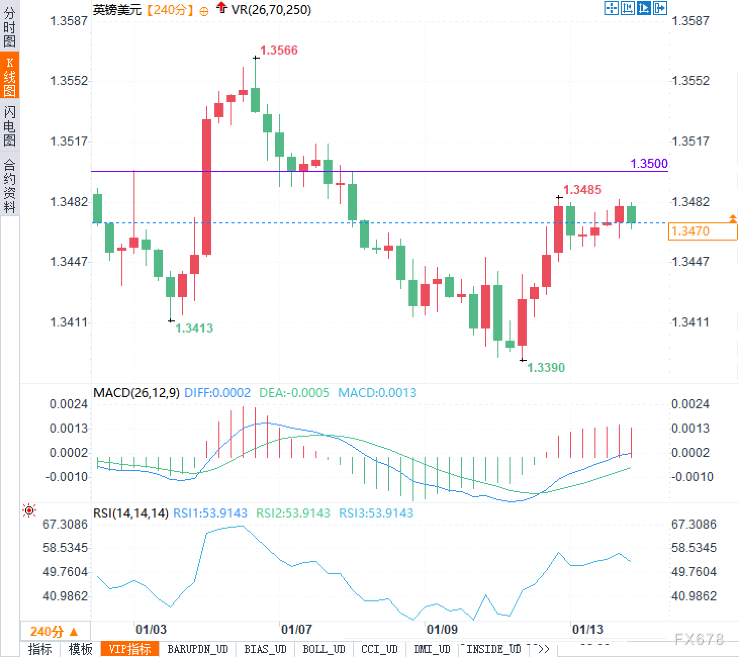 0英镑兑美元在经历周一的反弹后,周二(1月13日)继续走强,美市盘前交投于1.3470附近。市场情绪整体偏积极,但走势仍受制于上方关键技术位的压制。从图形结构来看,汇价在240分钟级别上正围绕1.3470区域整理,此前 ...