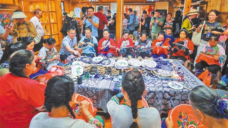 在十八洞村苗绣乡村振兴示范基地,游客观看并体验苗绣制作。宋显金摄(中经视觉) 万物蛰伏的冬日,孕育春的希望。武陵山脉深处,湖南省湘西土家族苗族自治州花垣县十八洞村——这个225户、900多人的苗族村,提前迎来了春天。 2013年11月3日,习近平总书记来到这里,首次提出“实事求是、因地制宜、分类指导、精准扶贫”重要理念。大政出于小村,小村洞见时代。历经8年攻坚、5年巩固,全国近1亿人稳定脱贫。十八洞村减贫经验,也飞出湘西,走向世界,成为世人了解中国减贫事业的一扇窗。 在巩固拓展脱贫攻坚成果同乡村振兴有效衔接5年过渡期的收官之年,经济日报调研组走进十八洞村。 牵 念 一大早,石拔三老人就梳洗完毕,身着苗服,立在门口,望着十八洞村梨子寨寨口的路。 当年,习近平总书记走进这个湘西大山深处的苗寨,在坑坑洼洼的院坝上与乡亲们围坐畅谈,首次提出“精准扶贫”的重要理念。 石拔三家在村口,成为总书记踏访的第一户人家。老人回忆道:“那时,家里没有电视机,我又不会说汉话,全靠村支书翻译。第一次见到总书记,感到既亲切又暖心,脱口而出一句‘怎么称呼您’,没想到总书记回答‘我是人民的勤务员’。”尽管已无数次回忆当日的情景,石拔三的眼眶还是湿润起来。 曾经的十八洞村,是武陵山连片特困地区的一个深度贫困村。村民们忆当年,那是“三沟两岔山旮旯,红薯洋芋苞谷粑;要想吃顿大米饭,除非生病有娃娃”。抬头是山,低头是沟,乡亲们在人均耕地只有0.83亩的薄地里刨食,真是“没有产业口袋空,没有老婆家庭空,没有人气寨子空,没有精神脑袋空”。 2017年,村子整体脱贫,136户533人全摘了穷帽; 2024年人均收入涨到28223元,是2013年的16倍多。如今的十八洞村,发展有思路,出寨有大路,致富有门路,上网有网路,成为全国闻名的红色旅游景点。 沉寂的苗寨热闹起来,在外打工的人回来了,毕业的大学生返乡了,外面的客人进来了……山门打开,乡亲们心情从未如此敞亮,日子从未如此有奔头。 此前连汽车都没坐过的石拔三,在家门口的边城机场坐上飞机,去了北京。每每有游客问起,她都会连比带划地说:“7次了,去北京,坐飞机。看到了蓝天白云,看到了天安门。家里还买了大彩电,看新闻,总书记的画面一出现,我就放下手里的活儿,好好看看他、听听他在讲什么。” 石拔三家门口贴着一副对联,上联是“吃水不忘挖井人”,下联是“世代不忘总书记”,横批是“饮水思源”。老人紧紧拉住记者的手说:“你们是北京来的,能不能转告总书记,感谢他,乡亲们很想他。” 像石拔三一样把浓浓的思念刻在对联上的,还有退休教师杨东仕。那天,他刚打开家门准备外出,抬头就看到总书记从对面走来。杨东仕立在原地,一时不知道说什么好。总书记主动走上前,与他亲切握手交谈。 “更巧的是,那天我爱人也参加了院坝上的座谈会,她也跟总书记握了手,我们家实在是太幸福了!当晚我激动难眠,第二天一早便写下了这副对联——‘习主席握手温暖人心,共产党领导福泽万代’,横批是‘幸福人家’。”杨东仕的脸上幸福满溢。 “苗寨脱贫感党恩,家和人勤传孝亲”“精准扶贫春已到,芳菲盛举正当时”……村里人家门口的一副副对联,记录着十八洞村翻天覆地的变化,寄托着乡亲们对美好生活的期待、对人民领袖的质朴牵念。 兴 产 治穷,要拔根;拔穷根,就要有产业。 十八洞村跌跌撞撞、磕磕碰碰,最终找到了一条兴产富民的路子。 “2024年,我们分红77万元,2025年我们分红100万元!”说到分红,第二十届中央候补委员,十八洞村党支部书记、村委会主任施金通声音洪亮。在精准扶贫主题陈列馆前,997名村民人均领到了1000元的大红包。 有红包,是因为有产业。红色,是新时代十八洞村最鲜亮的底色,也是发展旅游的金字招牌。如今,这个小山村荣誉等身,全国和美乡村百佳范例、联合国世界旅游组织认定的最佳旅游乡村…… 但发展旅游,也踩过坑。十八洞村出了名,一时间涌入许多游客,不少问题也随之暴露。你卖啥我卖啥,商品严重同质化;摊位乱占乱摆,停车难堵车多秩序乱;环境不尽如人意,经营理念也落后,有的人是能宰一笔是一笔。 怎么办?必须规范升级、打造口碑,否则没人愿意来。花垣县驻十八洞村扶贫工作队与村委会商量,决定引进社会资本,以“鲇鱼效应”倒逼大家好好干。 质疑声随之而来——“这不是肥水流入外人田?”“村集体办餐厅不是与民争利吗?”…… 顶住压力说服村民,村委会坚定推进旅游升级。提升村容村貌,民居修缮,修旧如旧;牲畜禁养,消除异味;摊位集中管理,谁经营谁负责;改善旅游体验,村级游客服务中心、千米游步道等先后建成。全新亮相的十八洞村,颜值与名气更匹配,2024年接待游客88.7万人次,旅游收入2198.8万元,成为村集体经济收入和村民增收的主力。 与红色文旅一同火起来的,还有苗绣。 在十八洞村苗绣乡村振兴示范基地,绣娘石春英拢了拢衣角,笑着朝来客招手:“欢迎看看苗绣,都是我们亲手绣的。”货架上50多款上千件绣品,她如数家珍。 早些年,为了过得好点,她背着行李走南闯北,没文化没手艺,脏活累活都得接。外出打工那些年,她把孩子丢给老人,一年到头难回一次家。过完春节,只能悄悄出发,听到身后传来孩子撕心裂肺的哭声,心如刀绞却不敢回头。 2018年,十八洞村启动苗绣“让妈妈回家”计划。在