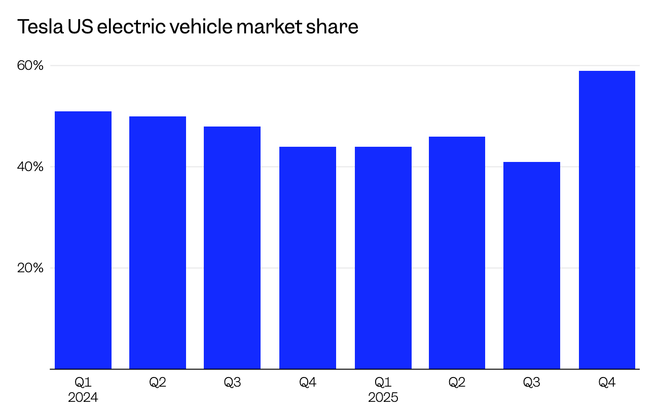 0特斯拉凤凰网科技讯 北京时间1月14日,据《商业内幕》报道,随着美国联邦电动汽车补贴在去年第三季度终止,美国汽车制造商需要依靠自身竞争力求生存。在这种背景下,特斯拉在美国电动汽车市场的份额大增,因为对手更 ...