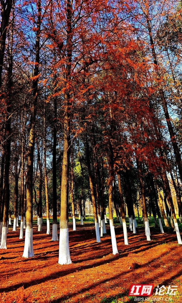 深冬时节,株洲市湘江风光带的钢琴广场一带,呈现出静谧而温暖的景致。放眼望去,江边水杉林已褪去翠绿,枝叶染上橙红与赭黄,随风飘落的叶片在步道上铺成松软的“自然地毯”。笔直的水杉树干被涂白防虫,与暖色调落叶形成鲜明对比;湘江水面微波粼粼,倒映着岸边林影与天空光色,阳光从枝叶间洒下,在步道上投落斑驳光影。远处偶有市民悠闲散步的身影,与冬日江景、红杉林共同勾勒出一幅和谐画面。这片滨水空间既延续了自然四季的流转之美,也始终保持着为城市居民提供的宜居与惬意。