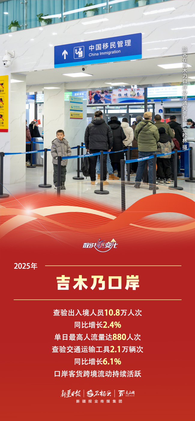 过去一年,新疆口岸经济活力十足,自信新疆也在开放中得到了最直接、最有力的印证。霍尔果斯、阿拉山口、吉木乃、塔克什肯……这些口岸如同镶嵌在祖国西北边陲的璀璨明珠,在共建“一带一路”宏伟蓝图中,焕发出前所未有的生机。2025年,新疆口岸实现了哪些新突破?取得了怎样的亮眼成绩?今天的《数说“新”变化》一起来看看。