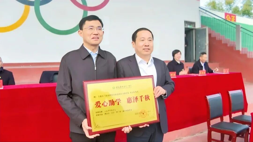 捐赠仪式上,王启武为李诗华颁发了捐赠证书牌匾。李诗华与学校相关负责人签订了捐赠协议。澧县一中党委书记李绍南致欢迎辞,学生代表进行发言。 李诗华在讲话中回顾了求学、创业的难忘岁月,并寄语一中学子要珍惜当下,勤学苦练,要有时代召唤,舍我其谁的拼搏精神,要有心如澧兰,德润芳华的品格。他还希望“澧兰奖”能如一粒火种,点燃更多人的善意与热诚,共同照亮母校前行的路。师生们以雷鸣般的掌声表达了对李诗华校友的由衷感谢,不少学生表示将以他为榜样,努力成长为对社会有用的人,为家乡建设发展和母校发展贡献自己的力量。 据了解,“澧兰奖”主要用于奖励澧县一中品行优良、成绩优异且有示范引领作用的学生和教育教学成绩突出的老师,资助学习成绩优异且家境贫困的学生和有特殊困难的教师,首捐100万元,以后每年将持续捐赠,意向捐赠总额不少于500万元。 |