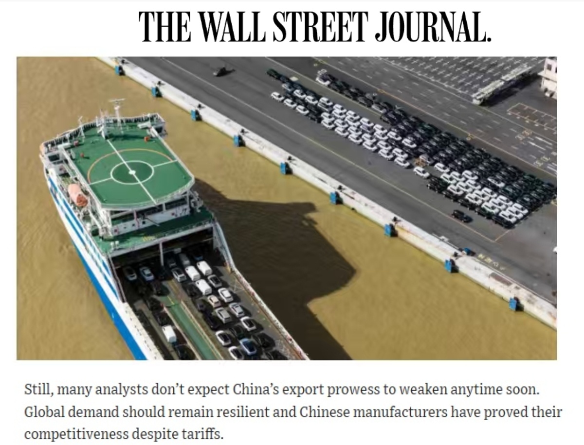 彭博社报道截图 《华尔街日报》关注到,中国制造商在全球其他地区开拓了新市场。 文章说,去年,中国对东盟、欧盟、拉美出口均实现增长,对非洲的出口额更是大幅增长超20%。许多分析师认为中国的出口竞争力短期内不会减弱。全球需求应该保持强劲,而且尽管有关税的影响,但中国制造商已经证明了他们的竞争力。