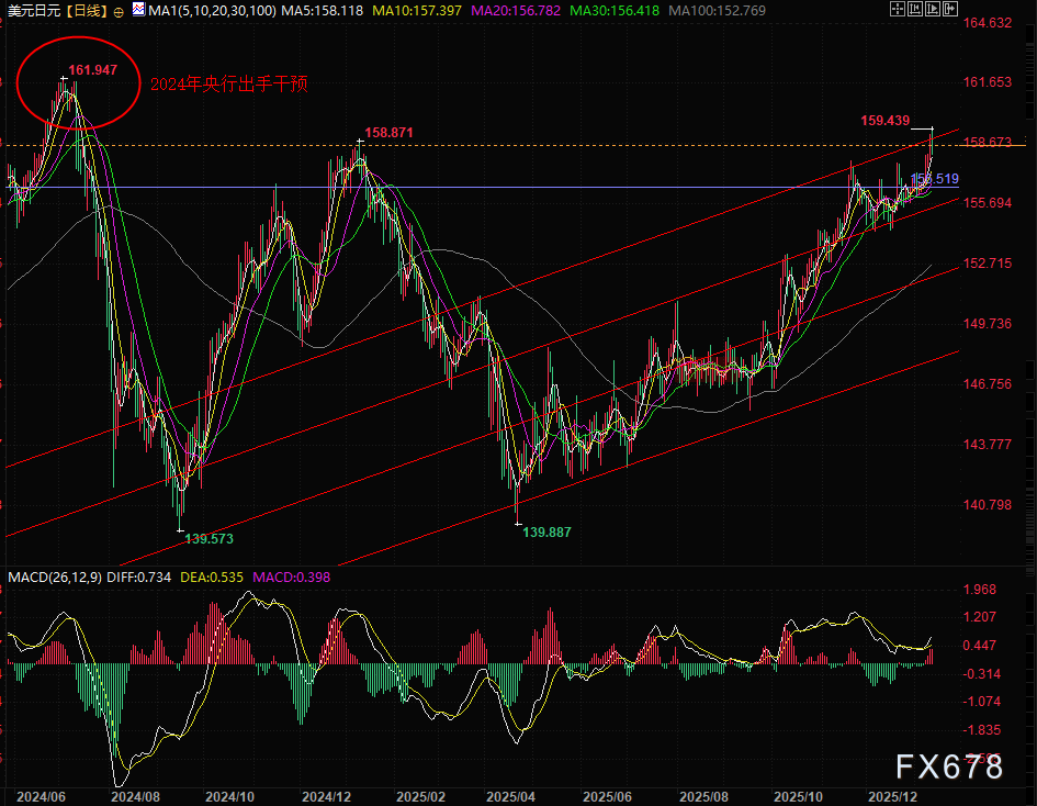 周三(1月14日)美元兑日元汇率正朝着2024年7月以来的关键关口加速迈进,目前已触及159.43的高点,距离市场紧盯的160目标仅一步之遥。 ![]() 日元疲软的根源,在于日本国内政策组合的内在冲突与日益升温的政治风险。 一方面,高市早苗政府计划推行大规模财政刺激政策,但投资者普遍质疑这一举措能否转化为可持续的GDP增长——尤其在日本央行已启动货币政策收紧的背景下,这种“一脚踩油门、一脚踩刹车”的操作完全不具备可持续性。 市场担忧宽松财政将进一步推高日本本就高企的债务占GDP比率,而货币政策收紧又难以直接扭转日元颓势,最终反映在盘面上便是10年期日本国债收益率升至2.178%的十年新高,日元全线下挫。 另一方面,政治层面的不确定性进一步加剧了日元的脆弱性,尽管高市早苗个人民意支持率已升至78.1%,但自民党支持率仍低于30%这是风险的来源,这促使其大概率在2月提前举行大选即使这样会导致原本3月的预算案延期,这样她可以利用民意支持的高峰进行众议院的重组,为之后施政扫清障碍。 市场普遍认为,若高市早苗成功连任,将继续推行更高财政赤字的政策,这无疑会进一步削弱日元需求,目前日元、日债的走势也代表场外资金在押注这高市早苗胜选以及推行安倍经济学的顺利进行。 面对日元贬值投资者反复呼吁政府强化财政纪律,但迄今为止仅能得到空洞的口头警示,对日元的信心持续受挫,美国财长贝森特也很急,日元的贬值会导致美日的贸易条件恶化,完全对冲美国发动的贸易战的仅存的战果。 美元韧性加持:基本面与地缘风险的双重支撑 日元的持续贬值,还离不开美元的持续强势,近期美元在多重潜在利空因素下展现出超预期的韧性。 其中美国12月核心CPI环比未变同比下降显示出美国通胀整体低于预期值有利于降息发展,但美元并没有明显贬值。 同时美国司法部对美联储主席鲍威尔的调查,也因多位共和党议员的迅速抵制而缓解了市场对美联储独立性受损的担忧,美元反而出现利空不跌。 更重要的是,美国经济基本面表现强劲,就业数据与服务业PMI数据稳健,使得美联储3月降息概率从48.5%降至25.7%,市场普遍预期利率将维持不变至6月。同时,美元反弹与油价回升形成共振——伊朗局势紧张、委内瑞拉与格陵兰岛等地缘政治风险发酵,推动油价上涨的同时,也进一步巩固了美元的避险属性,为美元兑日元的涨势提供双重支撑。 关键焦点:日本干预窗口何时开启? 当前市场最核心的分歧,聚焦于日本当局是否会出手干预汇市。 参考2024年7月的“教科书式操作”,日本官方大概率会等待明确的美元利空全球催化剂出现后才采取行动,当时干预启动时美元兑日元现货价格逼近162.00,以当前158.55的价位计算,距离该阈值仍有约350点空间。 不过,160关口被多数机构视为日本政府的“非正式红线”,这一水平可能成为阶段性阻力位。 值得注意的是,日本五年期国债拍卖需求疲软,进一步加剧了日元贬值压力,若汇率突破160后贬值速度加快,不排除日本当局提前干预的可能。 此外,日本央行也存在加息应对日元贬值的选项,但市场预期中性利率区间为1.5%-2.5%,加息可能引发日元套利交易平仓,反而带来新的市场波动。 总结与技术分析: 展望本周,美元兑日元的走势将受到多重关键事件的影响,周三美国将公布PPI和零售销售数据,周四初请失业金人数数据出炉,同时多位美联储官员将发表公开讲话,这些数据和表态将直接影响市场对美联储政策的预期,进而左右汇市走向。 另一个潜在引爆点是美国最高法院对特朗普关税政策的裁决,若本周出现不利于特朗普政府的裁决结果,反而可能成为美元的“反向利好”,为其提供额外支撑。 对于日元而言,短期贬值压力仍未释放,美元兑日元突破160关口只是时间问题,但后续走势将高度依赖日本的政治动向与干预决策——这场由政策矛盾、政治博弈与地缘风险共同主导的汇市变局,仍在持续发酵。 技术面美元兑日元正在挑战汇价大型上升通道的上轨。 虽然本次挑战失败,但汇价依然在5日线上,只要5日线可以守住则美元兑日元依然处于非常强势的区间。 压力位在上升通道上轨以及160整数关口,支撑在5日线以及157.57附近。 ![]() 北京时间20:17,美元兑日元现报158.64/65。
