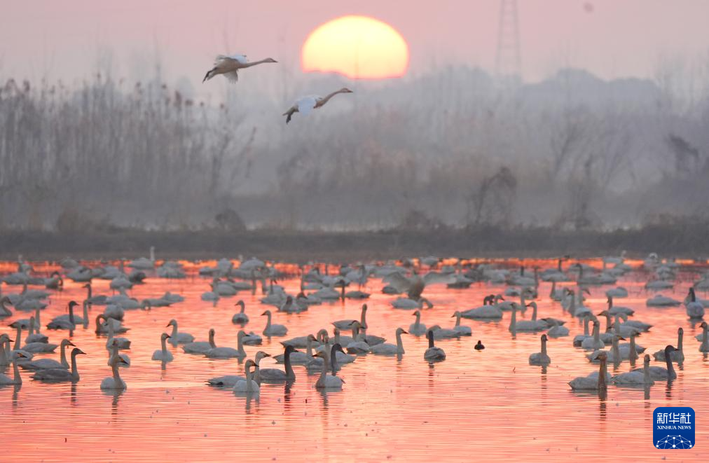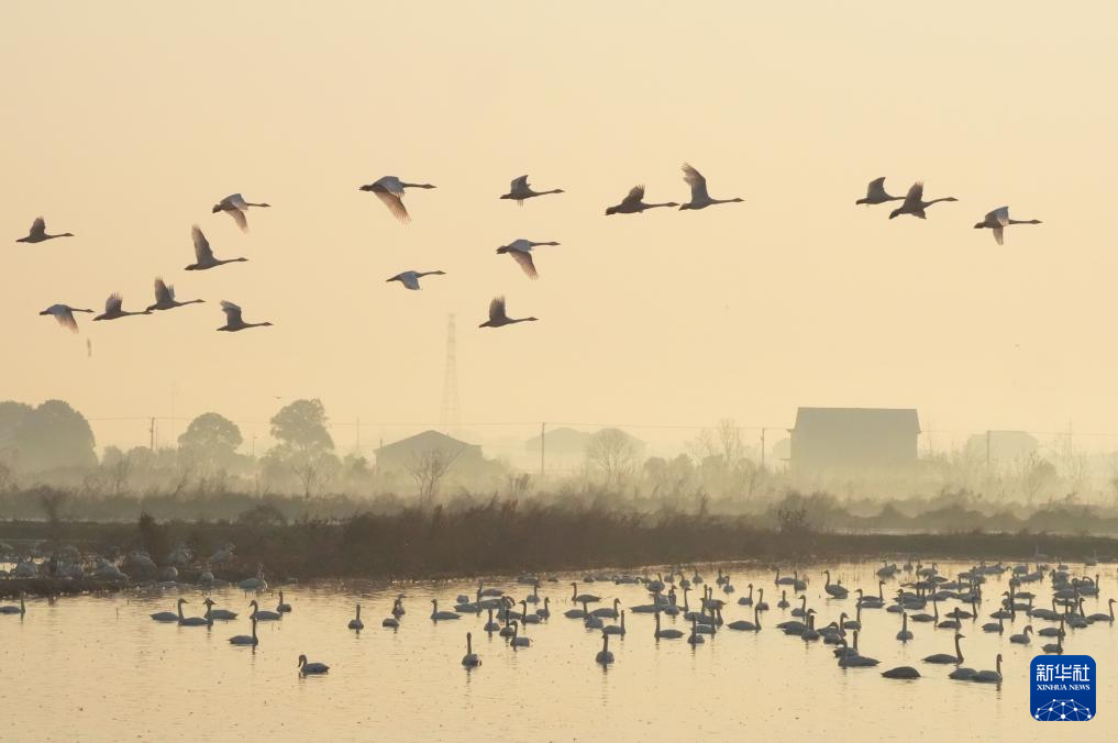 冬季,大批候鸟南迁到湖南省岳阳市屈原管理区东古湖湿地越冬。它们或悠然游弋在湿地浅水中,或振翅翱翔在湿地上空,勾勒出一幅灵动和谐的生态画卷,成为当地冬日一道靓丽的风景线。