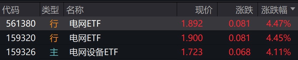 每经记者|叶峰 每经编辑|肖芮冬 电网概念股走强,思源电气涨超8%,国电南瑞涨超5%,特变电工、中天科技、宏发股份、特锐德涨超3%。 受盘面影响,电网ETF、电网设备ETF涨超4%。