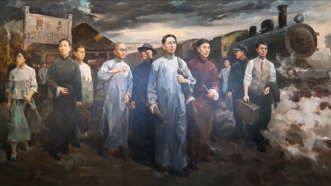 列车抵达的嘉兴火车站,承载着嘉兴逾百年的城市记忆。1921年,中共一大代表们便是从这里下车,步行至狮子汇渡口,乘船至南湖完成了会议。车站曾在1937年侵华日军的炮火中被毁,如今按1:1比例复原重建。乘客走下列车看到的站房,一如百年前党代表们看到的景象。