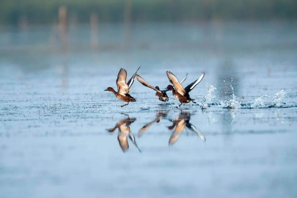 “千年秀林”碧波涌动,绿意盎然 城市公园如诗如画,欣欣向荣 中央绿谷宛如“绿色绸带” 将雄安新区环绕怀中 青头潜鸭、彩鹮等 野生珍稀鸟类落户白洋淀 人与自然和谐共生的 现代化图景徐徐铺展