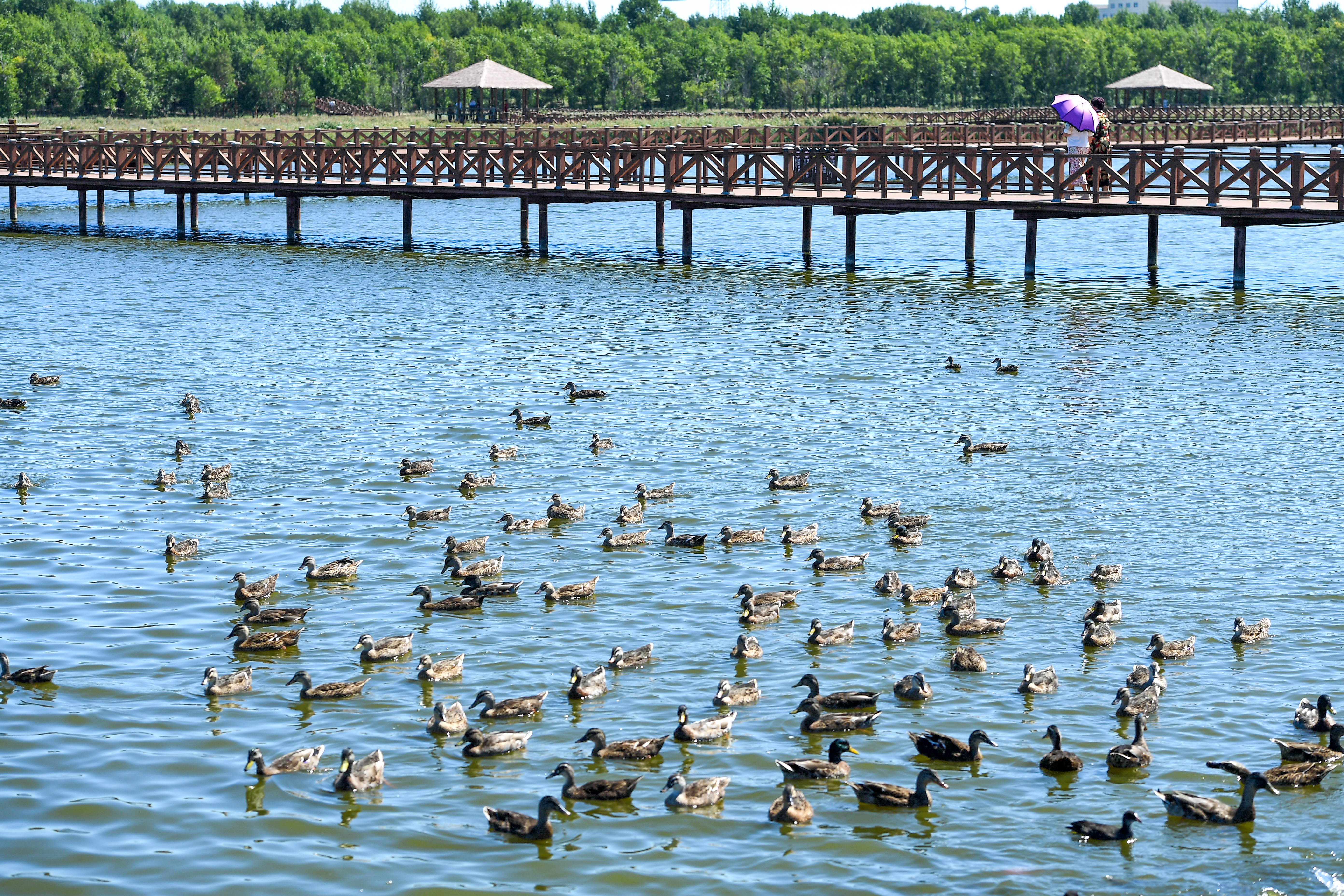 2022年4月28日,渔政管理站工作人员向查干湖投放鱼苗。查干湖通过“松花江—查干湖—嫩江”连通工程,以活水交换提升水质;南北景区各建一座污水处理厂,实现生活污水全收集、全处理;遍植荷花等水生植物,结合增殖放流和科学捕捞,形成“以水养鱼、以鱼净水”的生态循环,水质连续4年保持在Ⅳ类标准,鲜鱼年产量保持在5000吨左右。 湖碧鱼影动,水清鸟先知 如今,每年都有数十万只候鸟 来到查干湖休憩繁衍 白鹤、东方白鹳等珍稀鸟类 早已成为这里的常客