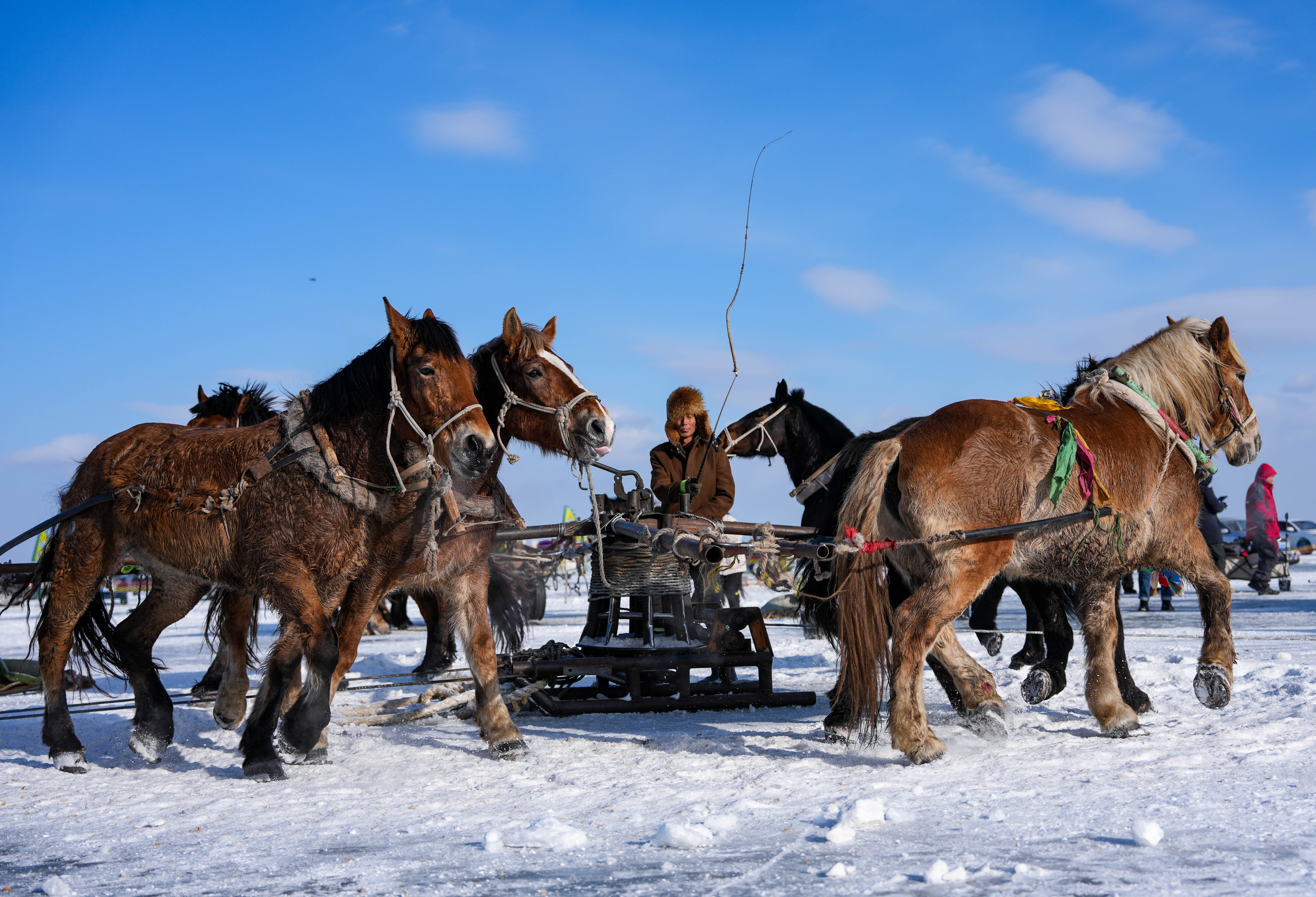 2021年12月26日,游客在查干湖冰面上观看冬捕。近年来,查干湖在保护生态环境的基础上,推动冬捕的可持续发展,通过科学规划捕捞量、加强渔业资源管理等措施,确保查干湖渔业资源的稳定增长。