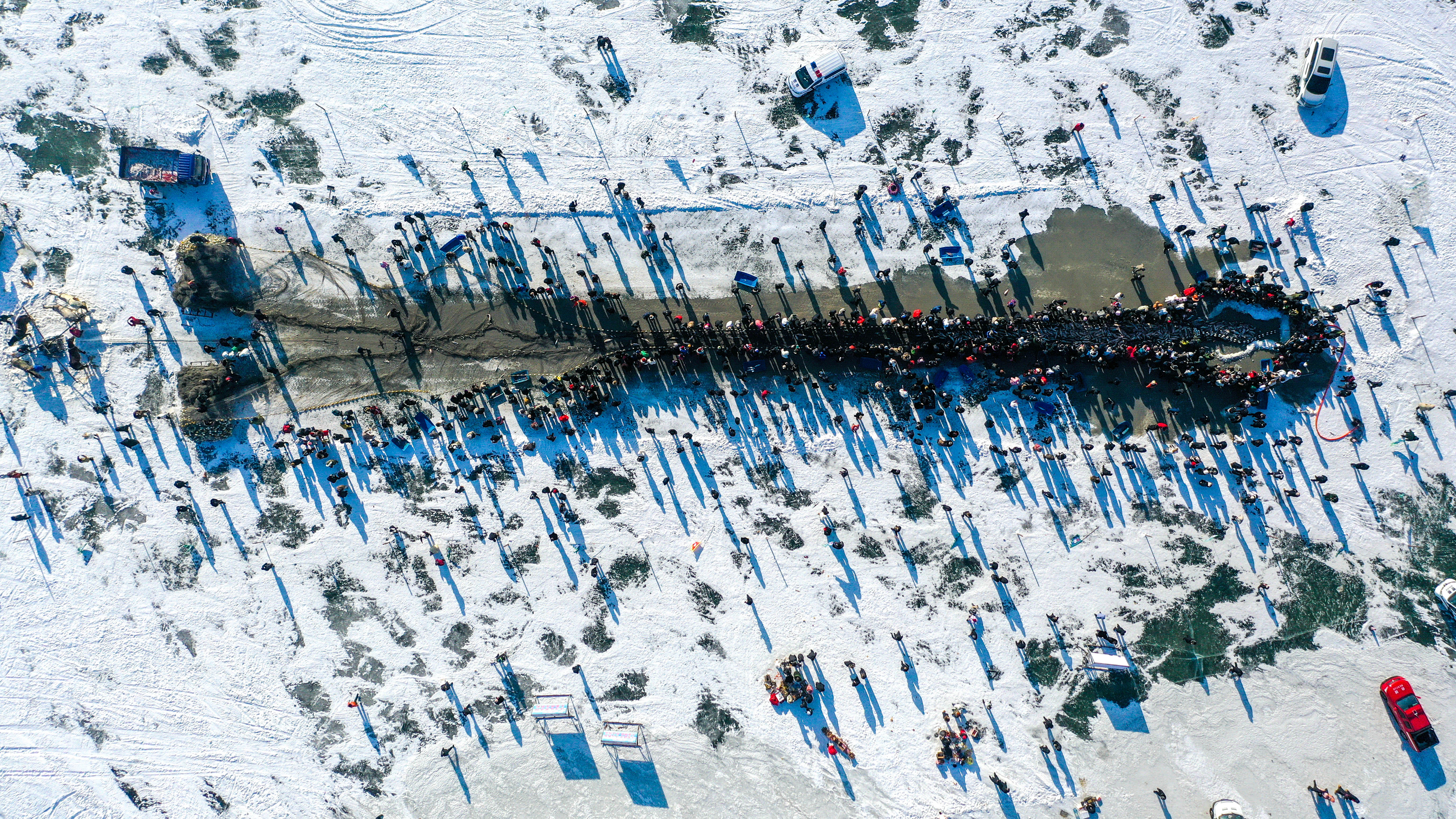 每逢冬季,冰封的湖面都会迎来