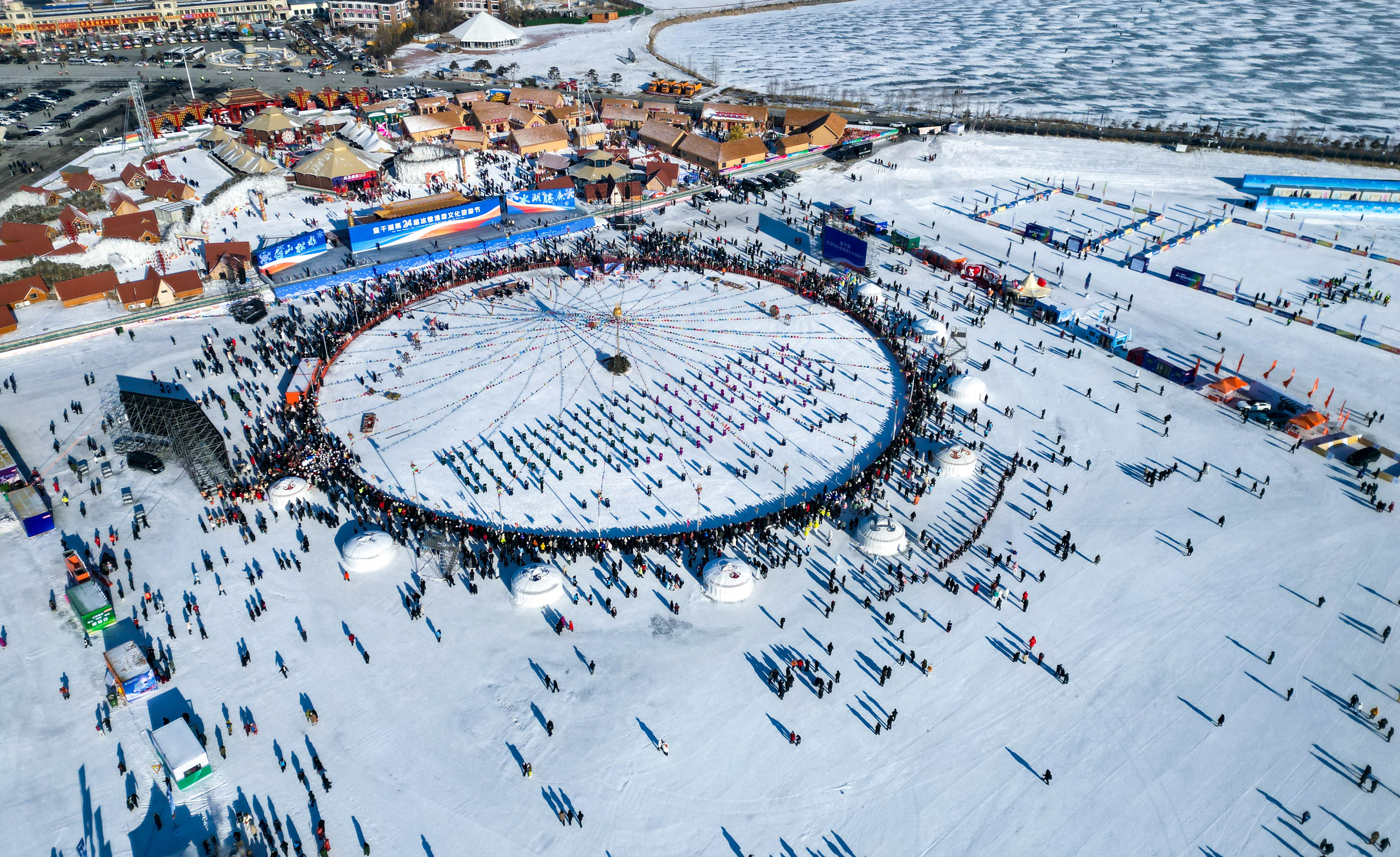 2026年1月8日,人们在吉林省松原市参加吉林·查干湖第24届冰雪渔猎文化旅游节开幕式。当日,八方游客齐聚冰封湖面,在银装素裹间和欢声笑语中共同邂逅一场集渔猎文化、冰雪运动、民俗体验于一体的冬日盛宴,见证着“冷资源”向“热经济”的精彩蝶变。