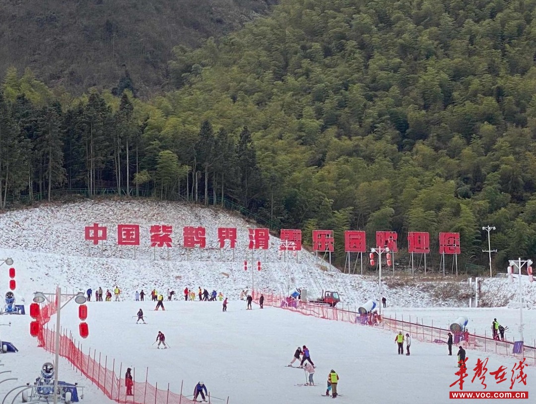 七星山滑雪场 向韬 摄(湖南图片库) 张家界的冬天,是“水墨峰林+皑皑白雪”的双重暴击。七星山滑雪场位于海拔1390米的高山之巅,雪场地形坡度介于2度至20度之间,平均坡度约12度,目前规划了两条专业滑雪道和一条趣味雪圈道,不管是第一次上雪道的新手,还是有一定基础的玩家,都能找到适合自己的线路。辽阔雪域可俯瞰天门山群峰,滑雪、雪地越野、冰上碰碰车等项目,让你在速度中拥抱云海美景。 实用攻略: • 交通:自驾导航至”张家界七星山旅游度假区“,到达游客中心后坐索道上山,再乘坐观光车直达滑雪场。 • 门票:七星山2小时滑雪套票138元(含景区门票)。 • 贴士:滑雪场营业时间为9:00-18:00(17:30开始清场),最晚需要在15:00之前到达游客中心。 娄底新化紫鹊界滑雪乐园:梯田旁的山野嬉雪场