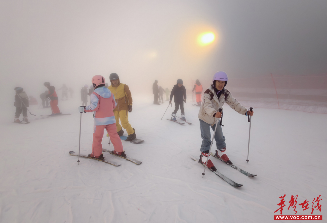 紫鹊界野外滑雪场 景区供图 冬日的紫鹊界褪去五彩斑斓,层层叠叠的梯田银装素裹,美如画卷。藏在世界遗产紫鹊界梯田之畔的野外滑雪场,海拔1200米,5万平方米雪道与万平嬉雪园相映成趣,自然坡度平缓,安全性高,适合家庭聚会和团建。这里不仅能体验双板滑雪,还有雪地迷宫、雪人DIY、雪地拔河等趣味项目,最多可容纳4000人同时游玩,热闹非凡。滑雪之余,还能探访梅山龙宫、古瑶寨,感受苗瑶文化。 实用攻略: • 交通:长沙自驾3.5小时可达,距新化县城约50公里。 • 门票:单人3小时滑雪套票138元,含紫鹊界梯田景区门票和基本雪具租赁。 • 贴士:开放时间为9:00-18:00,16:00停止入场。 大围山冰雪运动体验中心:云端之上的亲子冰雪乐园