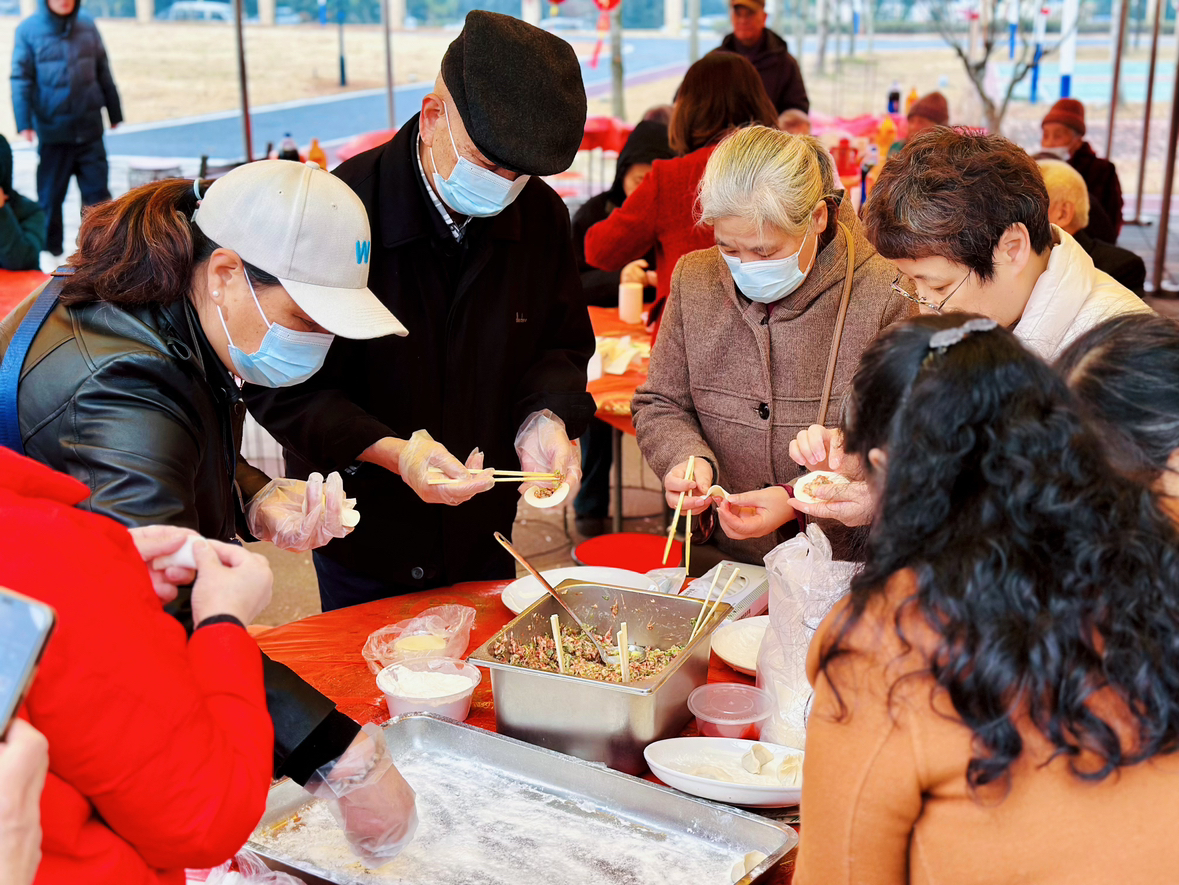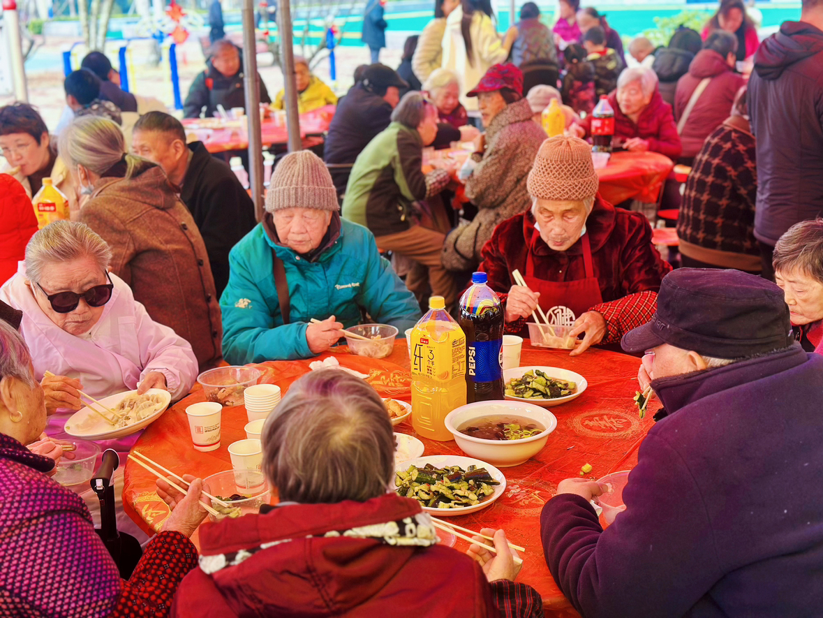 午餐时分,新鲜烹制的杀猪菜香气扑鼻,搭配亲手包的热乎饺子,老人们与家属、员工围坐共餐,畅谈新年心愿,现场氛围温馨热闹。