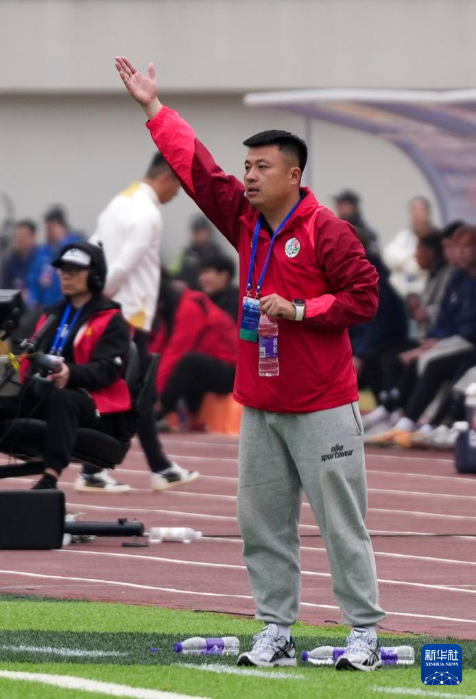 1月18日,湖南永州队主教练黄楚儒在揭幕战中于场边指导。在当天进行的揭幕战中,湖南永州队2比2战平山东泰安队。新华社记者 陈振海 摄