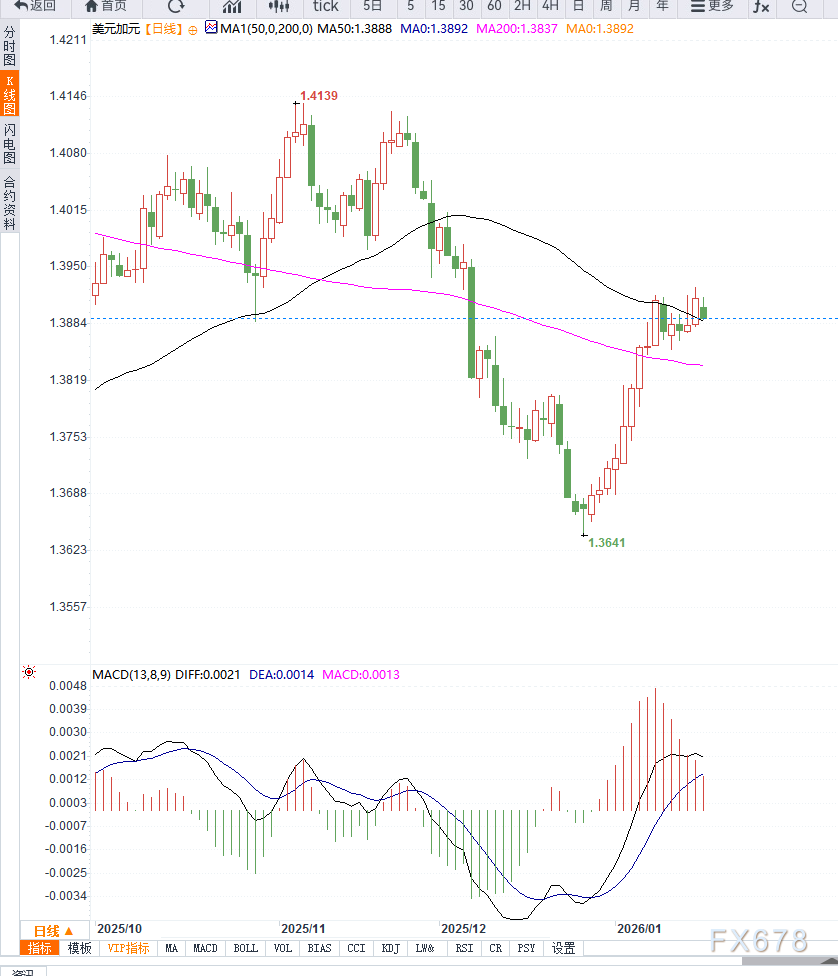周一亚洲交易时段,美元兑加元在1.3900附近短线回落,终止此前连续四日的上涨。加元受商品货币特性支撑,尤其是油价连续两日上涨为其提供外部助力。 ![]() 美元方面,美国近期劳动力市场数据强劲,推迟了美联储降息预期至6月。美联储官员表示,在通胀持续回到2%目标前,没有急于进一步宽松的必要,这对美元提供了阶段性支撑。 综合来看,USD/CAD短线承压于油价对加元的支撑,但美元基本面仍在提供上行动力,短期汇价呈区间震荡偏弱。 从日线来看,USD/CAD在1.3900附近回落,短期上行趋势遇阻。5日均线略拐头向下,10日均线位于1.3880形成支撑,20日均线位于1.3850提供中期支撑。 MACD红柱缩小并接近零轴,短线动能减弱;RSI回落至55附近,显示短期偏弱但未进入超卖区域。上方阻力位为1.3925和1.3950,若突破则可能测试1.3980; 下方支撑位在1.3880和1.3850,跌破1.3850可能触发进一步回调。整体日线结构显示,短期偏震荡偏弱,需关注油价及美元动向。 ![]() USD/CAD短线回落主要受油价走强支撑加元所致,但美元基本面仍提供支撑,形成拉锯格局。美伊局势缓和和油价上行受限,使汇价难以持续突破近期高点; 同时,美国强劲劳动力市场数据推迟降息预期,支撑美元中线走势,关注1.3880—1.3925区间支撑阻力,短线偏震荡偏弱。若油价继续上涨且美元回落,可能推动加元短线进一步走强;反之,若美元回升,则USD/CAD可能重回上行区间。