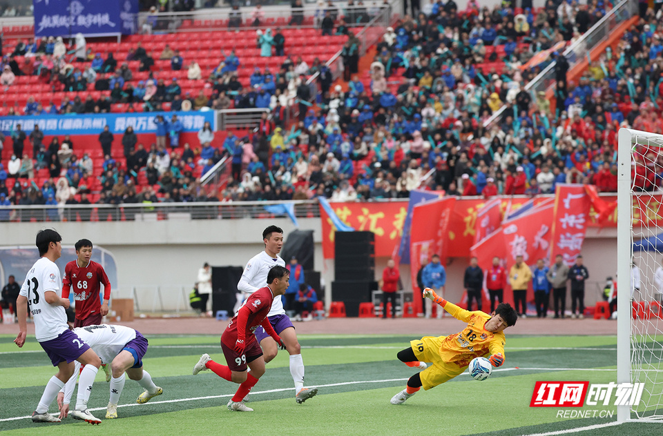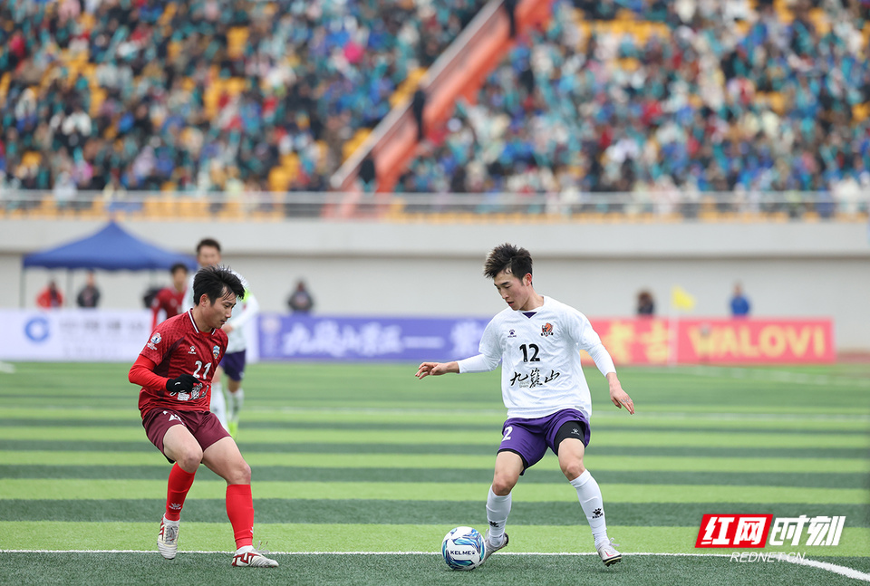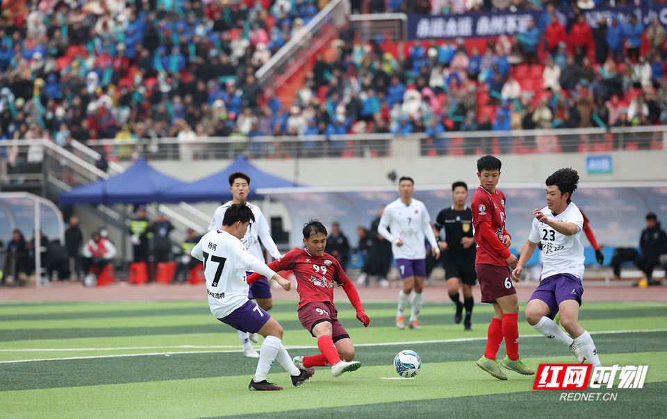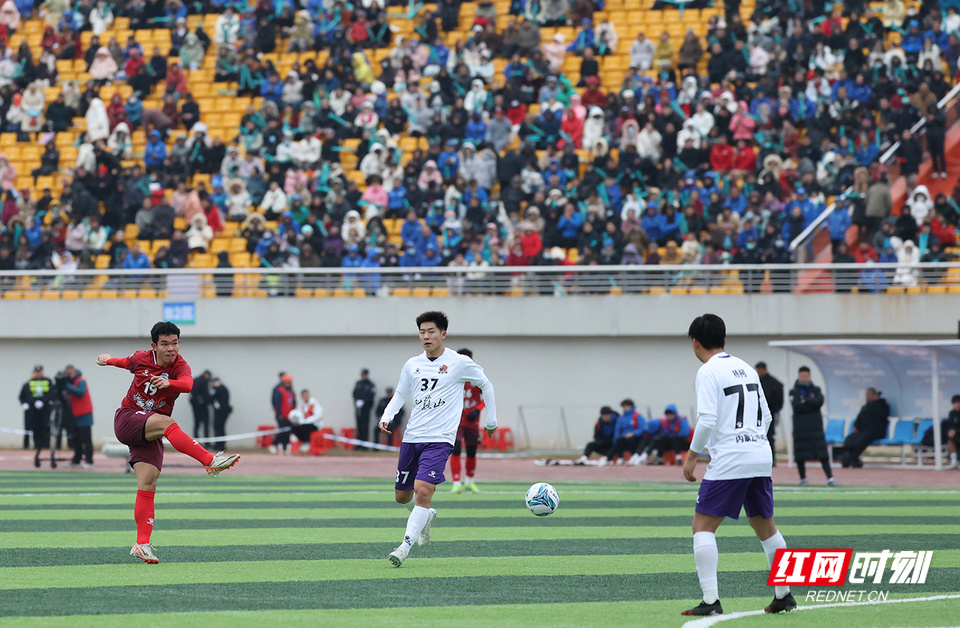 红网时刻新闻1月19日讯(记者 陈杰)1月19日,永州市体育场,双方球员在比赛中展开激烈拼抢。当天,2026年CMG群众足球邀请赛进行B组第一场比赛,来自南粤的广东湛江队与草原雄鹰内蒙古呼和浩特队展开激烈角逐,最终,广东湛江队2比0胜内蒙古呼和浩特队。
