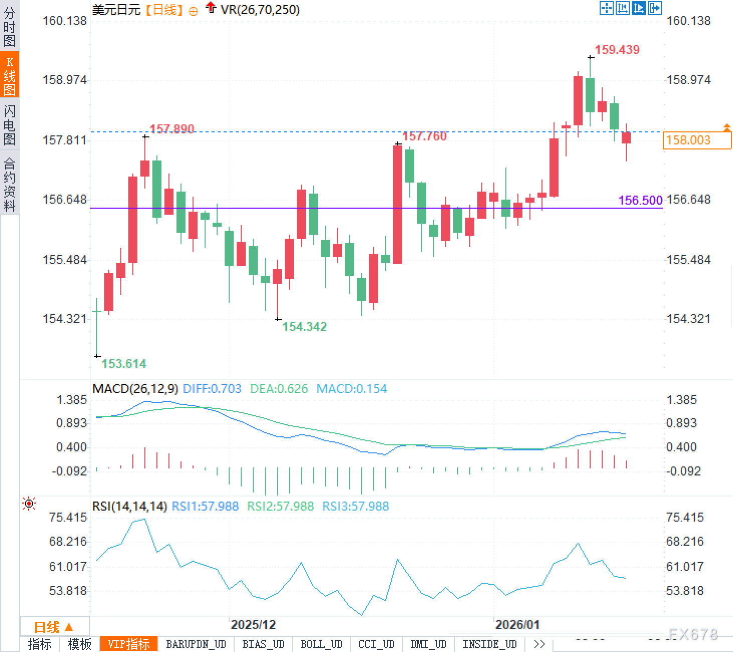 0周一(1月19日),美元兑日元欧洲时段交投于158.00附近,处于盘整阶段;日内曾一度下探至157.42,但随后又迅速反弹回158一线。这种走势透露出市场情绪的犹豫:既没有足够的动能推动价格继续上攻,也没有形成明确的 ...