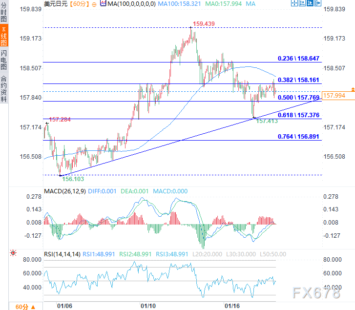 美元兑日元在周二(1月20日)亚市时段吸引了一些逢低买盘,中止了此前从一年半高点(159.44)回落的跌势,现于157.95附近窄幅震荡。市场预期日本当局将出手干预以遏制本日元进一步走弱,这继续为日元提供了支撑。此外,围绕格陵兰岛的地缘政治紧张局势升级,以及对贸易战重燃的担忧,打压了投资者情绪,进一步巩固了日元的避险地位。 ![]() 日元受益于避险资金流入及干预忧虑,多头在日本央行决议前显露迟疑 日本首相高市早苗周一表示,她将于本周解散议会,并于2月8日提前举行大选,希望藉此获得更强力的授权以推进其财政扩张政策。若执政的自民党在众议院取得绝对多数席位,高市将拥有更大自由度推行其议程;若仅获微弱多数,则将加剧政治不确定性。 与此同时,日本财务大臣片山皋月上周五警告称,为应对日元近期的疲软,当局将考虑所有选项,包括直接干预市场。片山还暗示可能与美国联合干预以支撑本币。此举,加之市场对日本央行的鹰派预期以及持续的避险买盘,共同在周二提振了日元需求。 日元近期跌至18个月低点,可能加剧通胀压力并迫使日本央行更快采取行动。事实上,上周五公布的数据显示,日本通胀率已连续四个自然年平均值高于日本央行2%的目标。此外,消息人士称,日本央行内部一些政策制定者认为存在最早于4月加息的空间,早于市场目前的预期。 然而,日元多头似乎不愿大举押注,而选择等待关于日本央行下次加息时机的更多线索。因此,市场焦点仍集中于周五日本央行行长植田和男在政策决议后新闻发布会上的表态。预计日本央行将在为期两天的会议结束后维持政策不变——上月该行已将隔夜利率上调至0.75%,创30年来新高。 美国总统唐纳德·特朗普因格陵兰岛紧张局势,威胁对八个欧洲国家加征新关税。该声明引发欧洲领导人强烈反对,并在持续的俄乌冲突中加剧了市场不确定性,从而提振了传统避险资产日元。 在特朗普表示希望国家经济委员会主任凯文·哈塞特留任现职后,交易员削减了对美联储在2026年再降息两次的押注。这进而表明,即将卸任的美联储主席杰罗姆·鲍威尔的继任者将是其他人选,这或将帮助美元吸引买盘。 美元/日元在100小时简单移动平均线关键阻力位下方运行时,空头占据主导 美元/日元自1月低点反弹后,其从61.8%斐波那契回撤位(157.38)的隔夜回升走势缺乏延续性,未能有效突破38.2%斐波那契回撤位(158.16),并在100小时简单移动平均线(SMA,158.32)前方遇阻回落,目前该均线构成关键枢轴点。汇价持续运行于此下行均线下方,维持看跌倾向。 移动平均收敛散度指标(MACD)仍接近零线,柱状图趋于走平,强化了中性基调。相对强弱指数(RSI)位于50(中性),表明温和反弹后市场处于平衡状态。 下行方面,若跌破38.2%斐波那契回撤位(158.16),市场焦点将转向157.77的50%回撤支撑位,失守此处后汇价可能下探157.38的61.8%回撤位。 上行方面,若尝试反弹,初步阻力位于100周期移动均线158.32。需MACD指标明显脱离零线上扬,且RSI指数升至55上方增强动能,方能确立有效突破并打开上行空间。 ![]() 北京时间11:14,美元兑日元交投于157.96/97。
