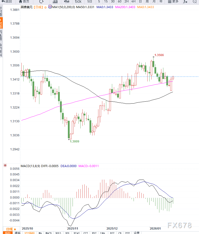 周二亚洲交易时段,英镑兑美元(GBP/USD)围绕1.3430窄幅整理,在前一交易日录得小幅上涨后缺乏进一步动能。 ![]() 本周稍晚公布的英国12月消费者价格指数和零售销售同样关键,若通胀粘性超预期,可能削弱市场对英国央行进一步降息的押注,从而提振英镑。 在美元方面,围绕格陵兰问题引发的贸易担忧情绪令美元承压。美国计划自2月1日起对多个欧洲国家商品加征关税,欧盟方面已表示将加强协调并准备反制措施,市场对更广泛经济摩擦的担忧有所升温。 外汇策略师Helen Grant表示:“贸易不确定性削弱了美元的风险偏好溢价,而英镑在数据窗口期更容易受到预期差的推动。” 不过,美国就业市场的韧性使美联储降息预期明显后移,为美元提供中期支撑。多位美联储官员强调,在通胀未明确回到2%目标之前,缺乏进一步宽松的紧迫性。 摩根士丹利分析师团队指出:“我们将2026年的降息节奏调整为6月和9月各一次,而非此前预期的1月和4月,这意味着美元的利率优势可能维持更久。”这一变化限制了英镑兑美元的上行空间,使汇价更多表现为区间震荡,而非趋势性反弹。 从日线结构来看,GBP/USD整体处于震荡偏强但缺乏突破的格局。价格在1.3400上方多次获得支撑,但1.3480—1.3500区域压力明显,显示多头尚未完全掌控节奏。 技术指标方面: RSI在52附近运行,处于中性略偏多区域,表明动能温和; 5日与10日均线趋于走平,尚未形成明显发散; MACD接近零轴,柱状图变化有限,显示趋势性力量不足。 关键点位上,若汇价能够有效站稳1.3480上方,有望进一步测试1.3560—1.3600区间;若再度跌破1.3380,则可能回踩1.3320支撑。整体来看,日线级别仍以区间整理为主,需等待数据催化。 ![]() 英镑当前的表现是英国数据预期与美元政策路径之间的拉锯。就业与通胀将决定英国央行是否继续降息,而贸易担忧情绪又阶段性削弱美元。 预计在关键数据落地前,GBP/USD更可能维持1.34附近震荡。重点关注薪资与CPI的超预期风险。