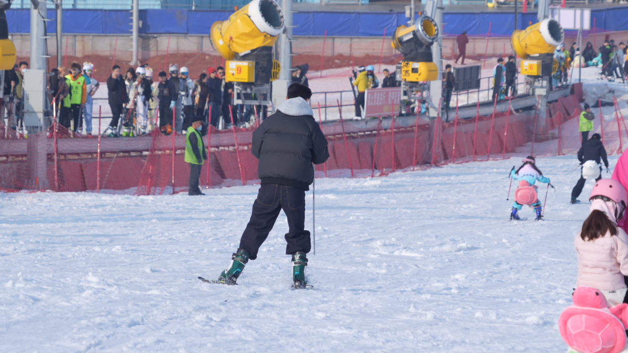 他将抖音账号更名为“三栖摄影师”,承诺在雪上、陆地、水下都能为客户留下精彩影像。这个源于热爱的尝试,竟意外打开了一片市场。如今,他穿梭于徐州各大雪场,拍摄一单收费200元,周末忙起来一天能接20多单,档期已排到下个月。“像是把两份快乐,稳稳地合成了一份事业。”葛耀这样形容。 葛耀的故事,只是江苏省徐州市“冰雪热”中的一个生动切面。这股热潮,在今年雪季迎来了一次集中绽放。1月17日,江苏省首届全民高山/单板滑雪联赛暨贾汪区第七届冰雪嘉年华在大景山滑雪场热闹启幕,来自全国各地的300多名选手在雪道上竞速飞驰,溅起一片欢腾的雪浪,也将这座城市的“冰雪热度”直观推至眼前。 这份热度,背后是坚实的“硬件基石”。今年元旦假期,大景山滑雪场三天接待游客1.14万人次,其日接待6000人的设施从容应对了客流高峰。幕后,数十台造雪机与压雪机日夜轰鸣,2000套双板、300套单板整齐待命,共同守护着雪道的品质与游客的体验。“让每个人都能安全、畅快地滑起来,是我们的责任。”雪场负责人高明说。